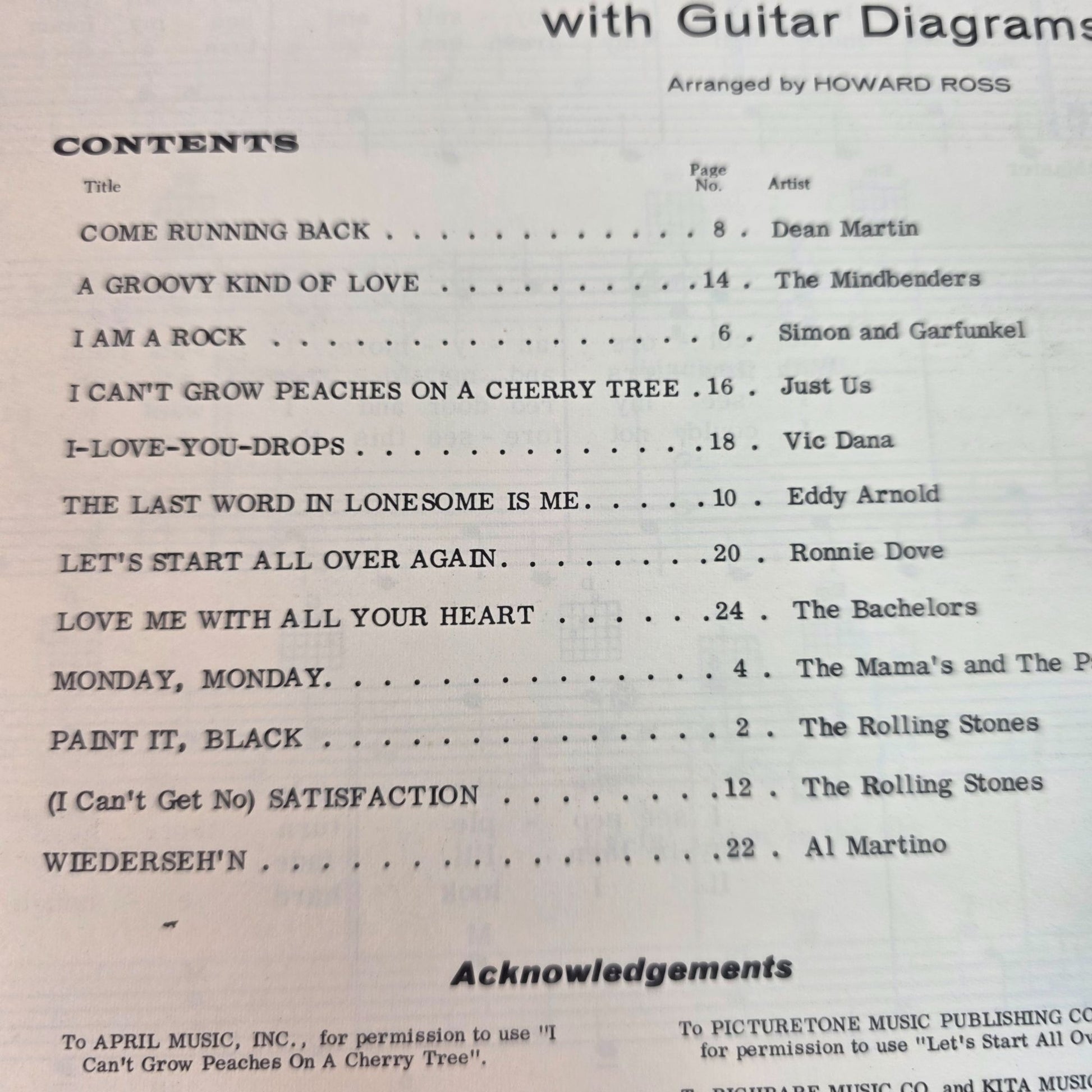 • • Arranged by Howard Ross• Includes guitar diagrams• 12 classic songs • Published by Keys Pops• Copyright 1966• Made in the USA