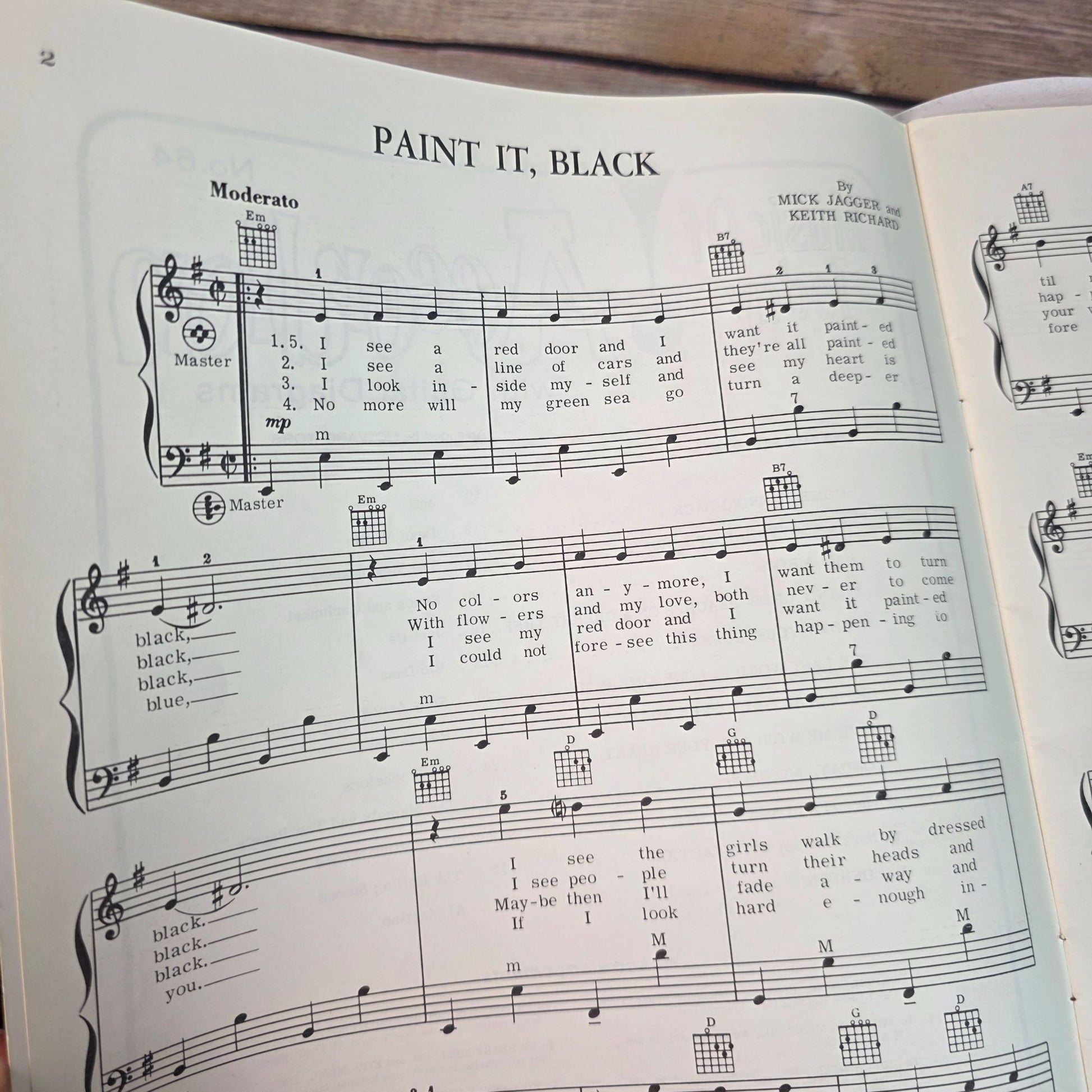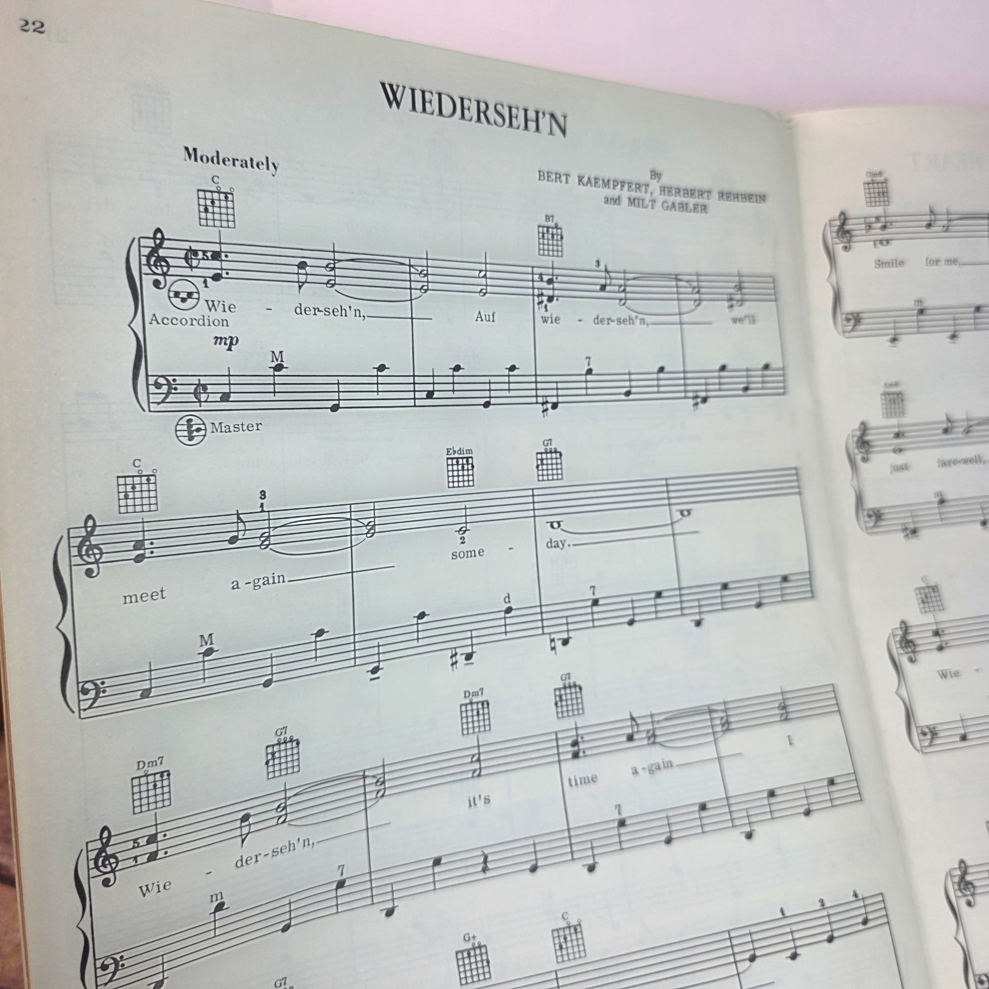 This vintage sheet music book, "Music Of Today" No. 64, offers a delightful collection of beloved tunes arranged specifically for accordion, complete with guitar diagrams. Crafted with the discerning musician in mind, it encompasses iconic tracks from renowned artists including The Rolling Stones and Dean Martin. The book's presentation is both functional and nostalgic, capturing the essence of a bygone musical era. An essential addition for collectors and accordion enthusiasts, it promises hours of musical exploration and enjoyment.