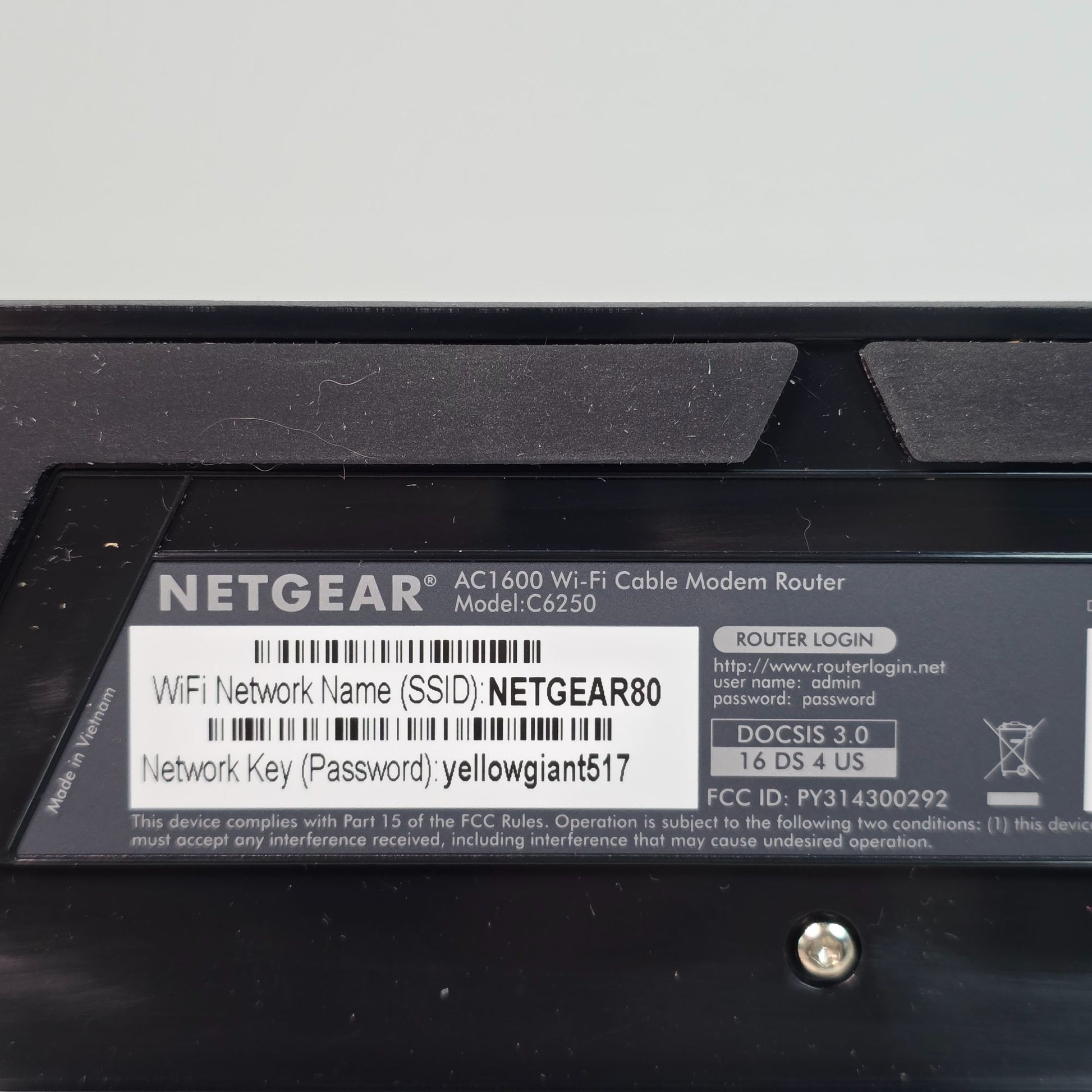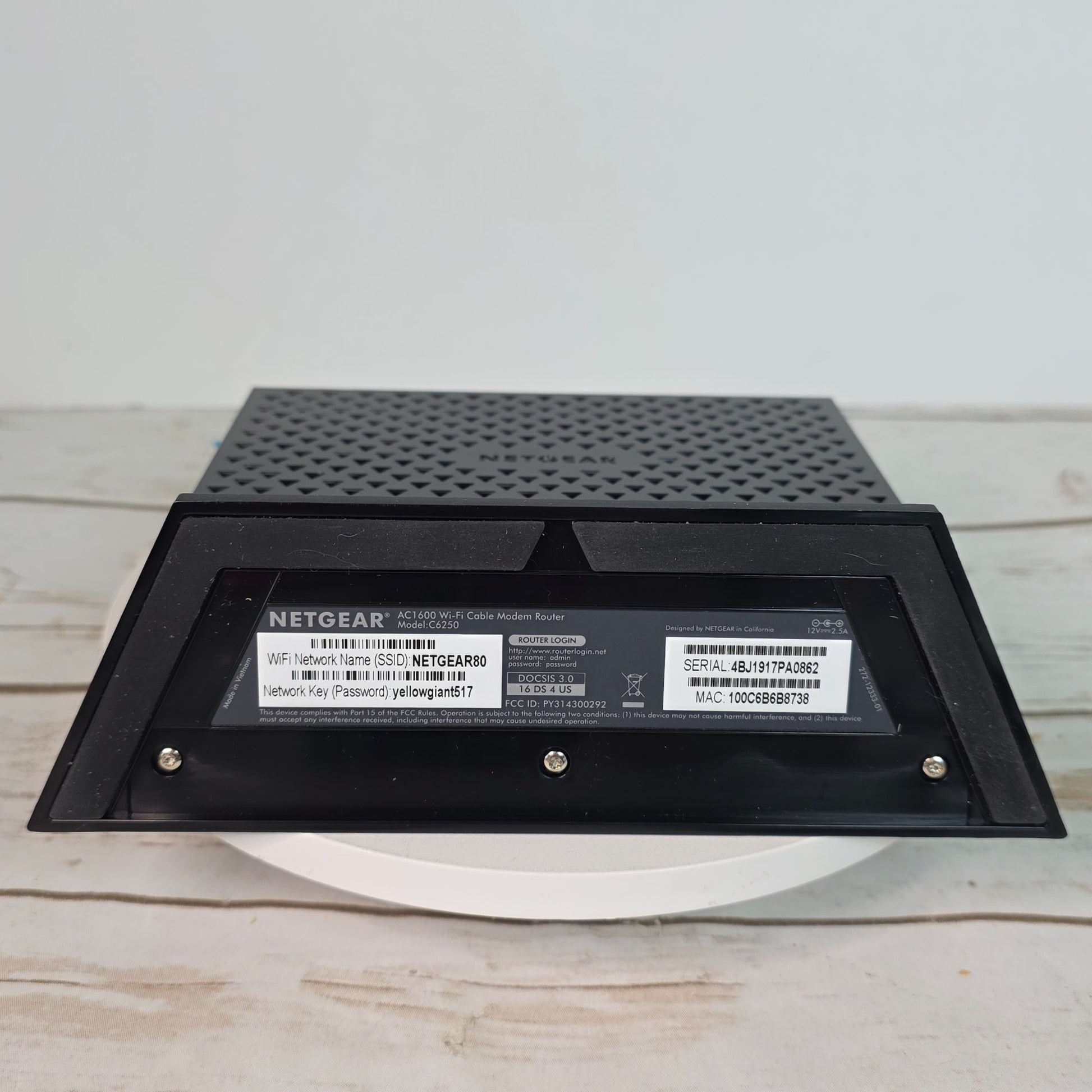 Netgear AC1600 WiFi Cable Modem Router C6250 Dual Band Gigabit - Up To 680 Mbps Speed