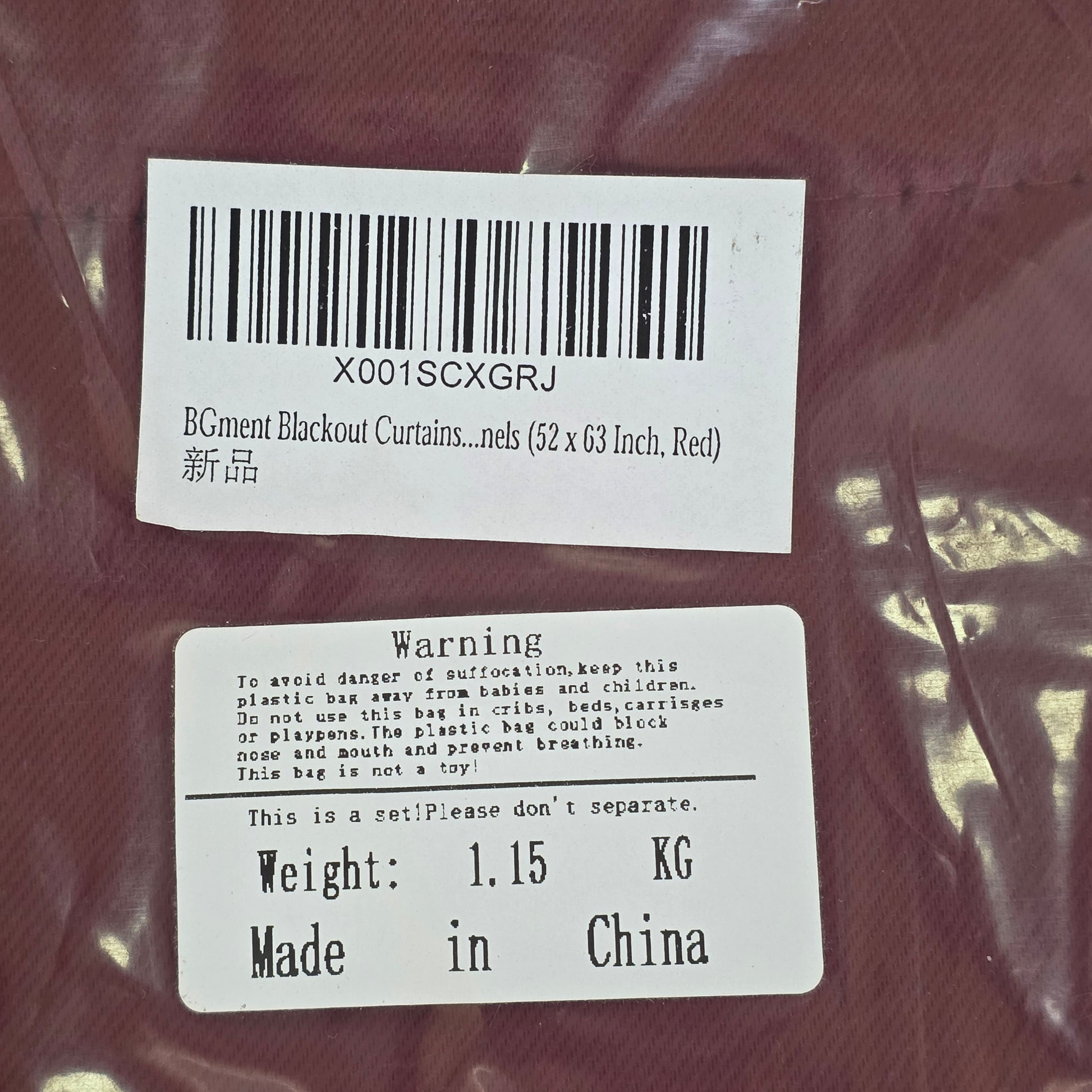 New BGment Blackout Curtain Panels 52x63" Red Rope Ties