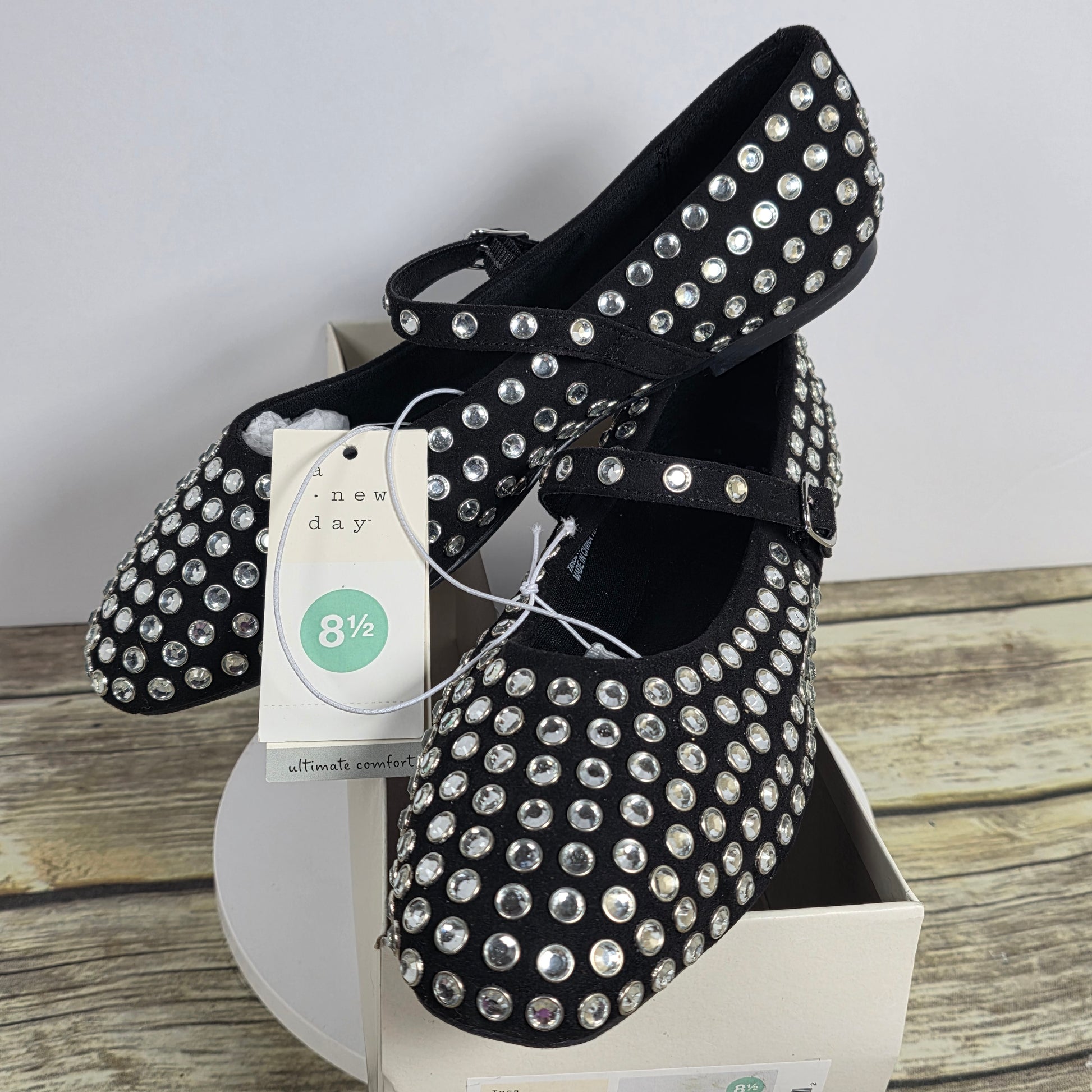 New Women's A New Day Issa Rhinestone Flats Black Size 8.5