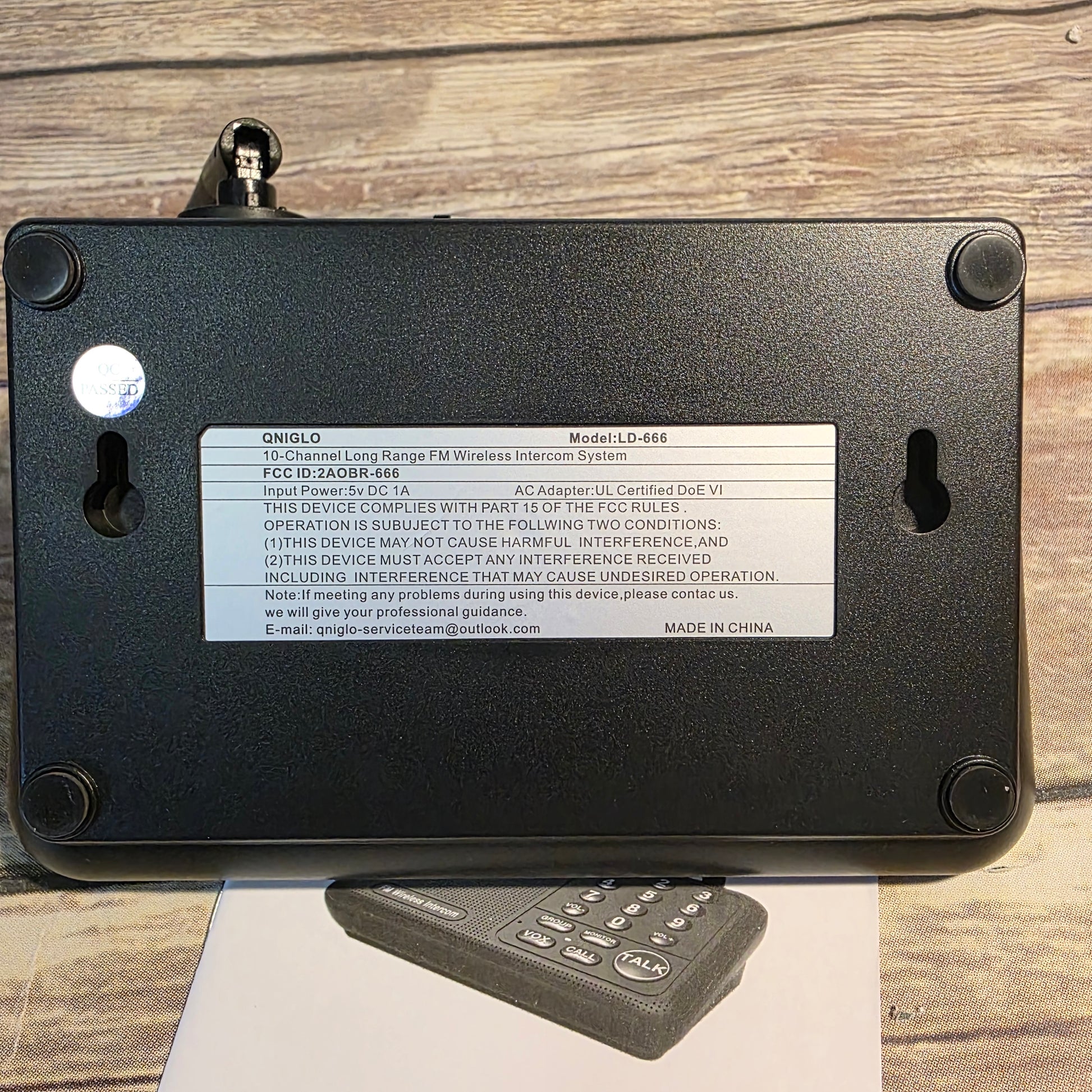 Introducing NIB New QNIGLO Multi-Channel Long-Range FM Wireless Intercom System LD-666. Upgrade your home communication with crystal clear sound and long-range capabilities. Connect up to 4 units for seamless communication throughout your home. Say goodbye to shouting and hello to convenience.