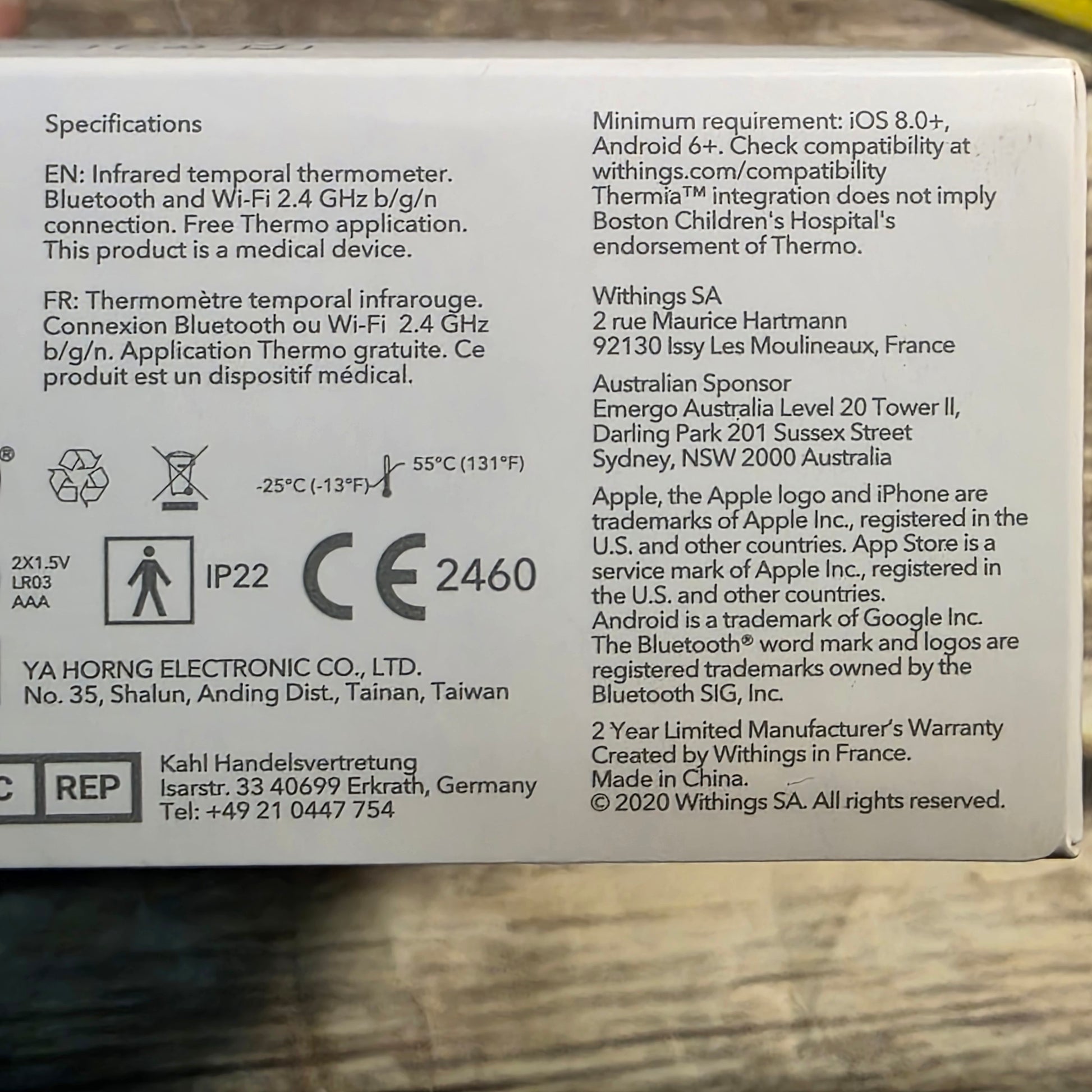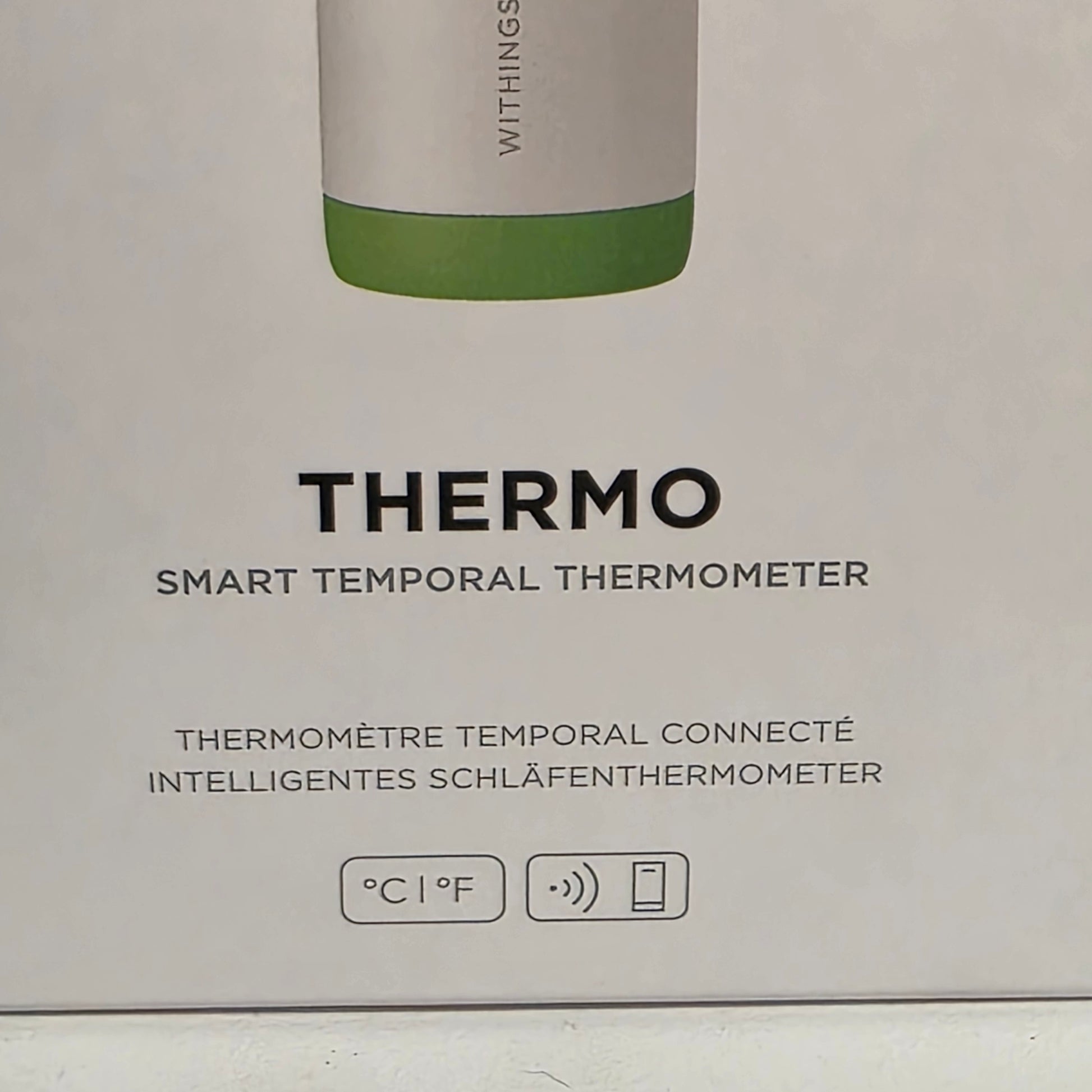 Introducing the NIB New WITHINGS THERMO Smart Temporal Thermometer. With high accuracy and digital display, it's the perfect blend of modern and versatile style. Bluetooth connectivity allows for effortless tracking. Made with premium plastic, it's easy to clean and FDA approved. Upgrade your health routine with elegance and precision.