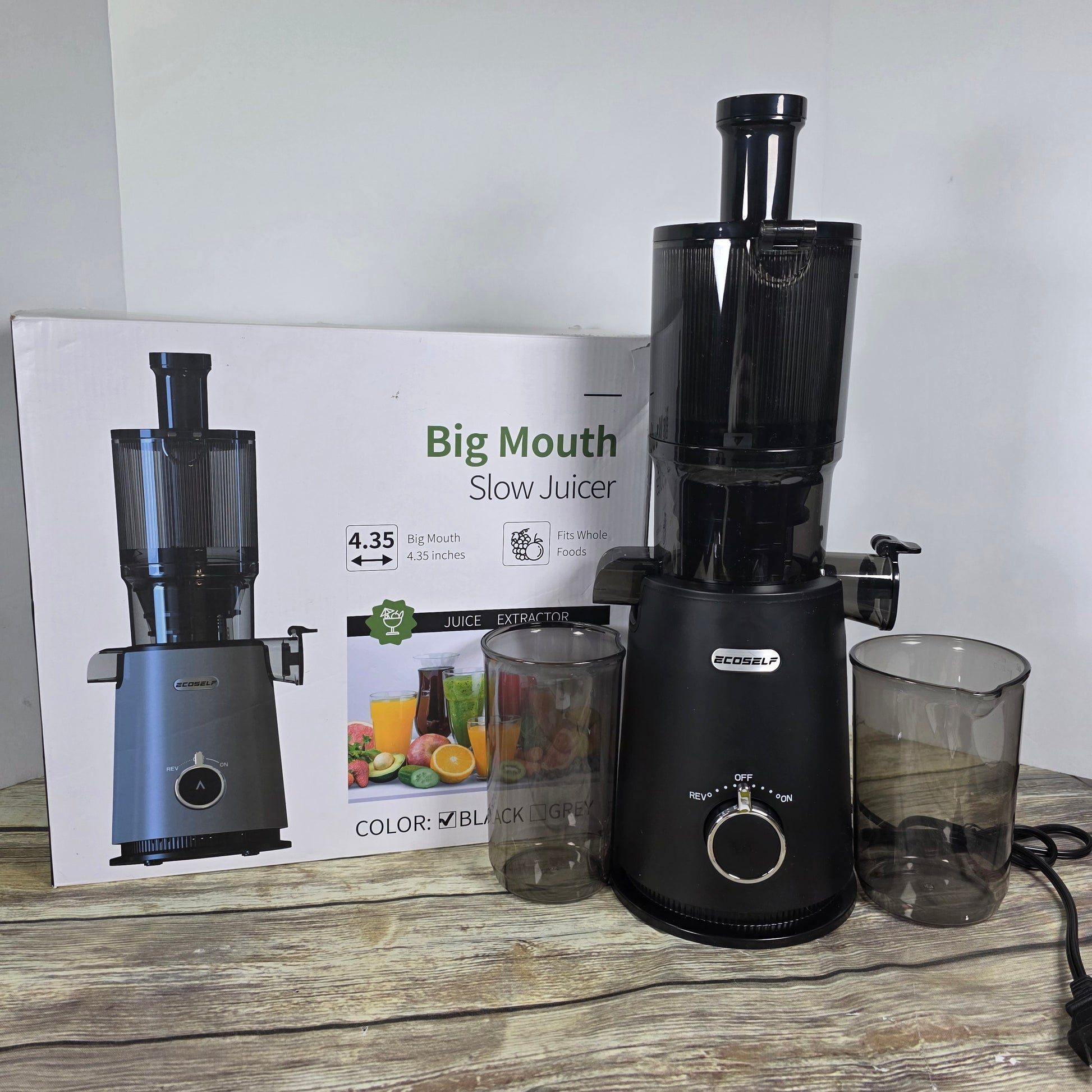 Introducing NIOB's New Ecoself Big Mouth Slow Juicer Black SJ-050C! Say goodbye to time-consuming preparation with its extra-large feeding tube. Create your own fresh, nutritious juice with ease. A must-have for health-conscious folks. Get your daily dose of vitamins and minerals without the hassle.