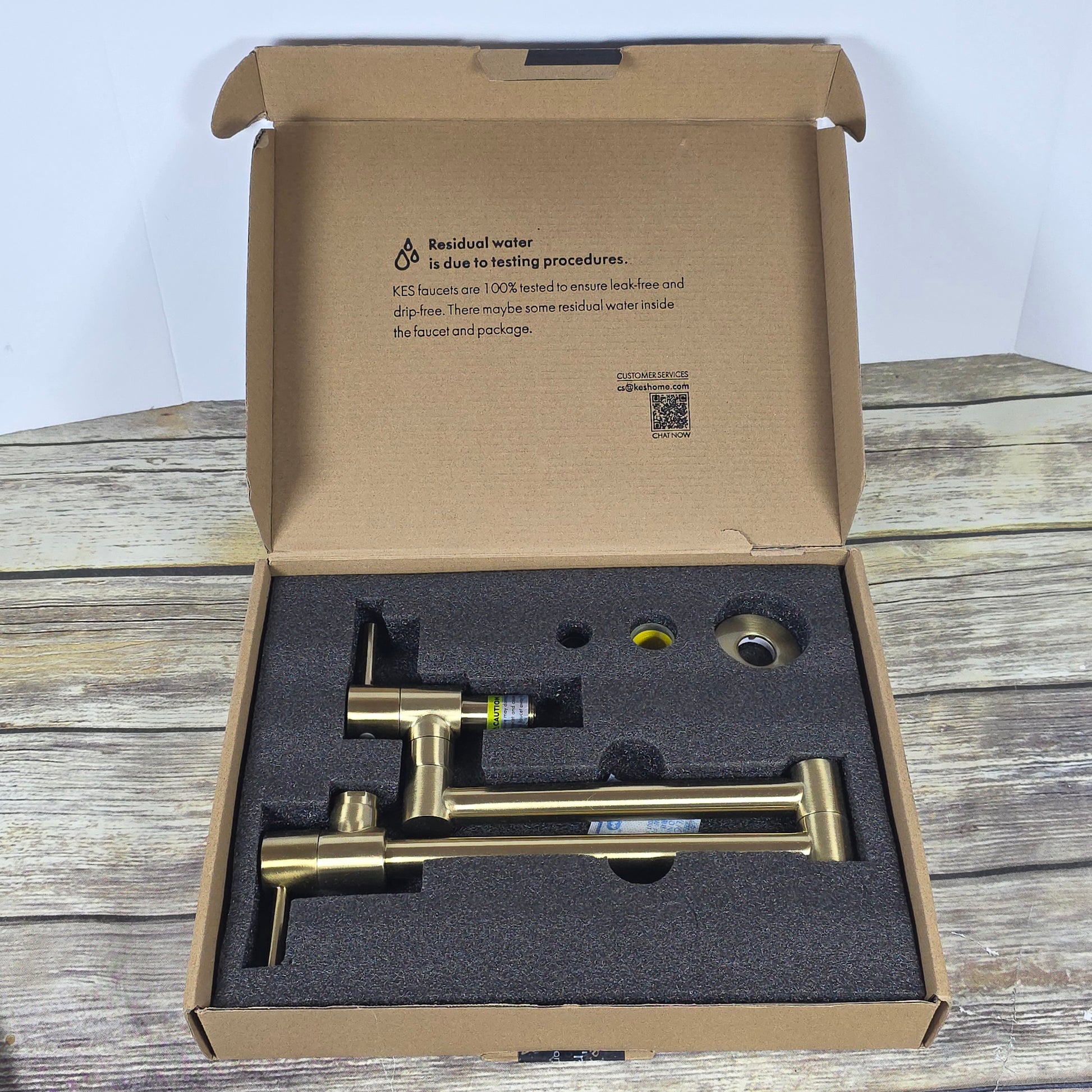 NIB KES Gold Pot Filler with Heat-Resistant Cartridge, 26" Brushed Gold Pot Filler Faucet Over Stove