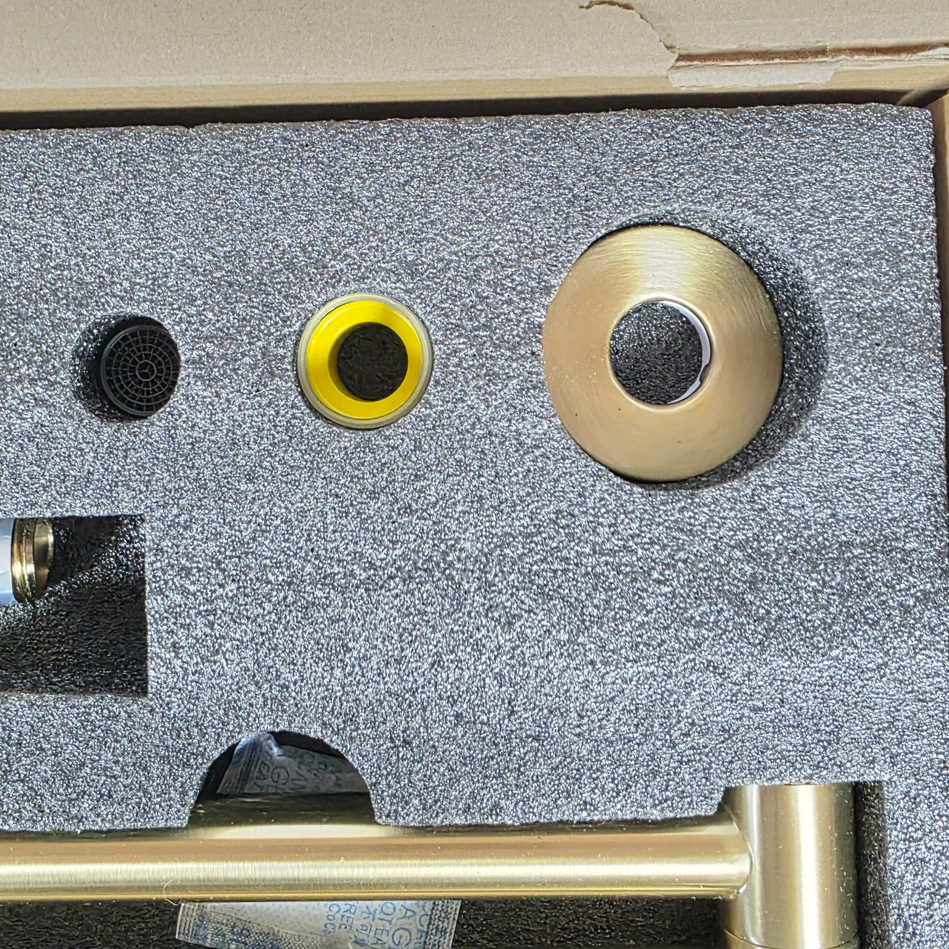 Indulge in luxury with the NIB KES Gold Pot Filler. With a heat-resistant cartridge and a 26" brushed gold faucet, it adds both style and functionality to your kitchen. Enjoy the convenience of filling pots over the stove while adding an elegant touch to your cooking space.