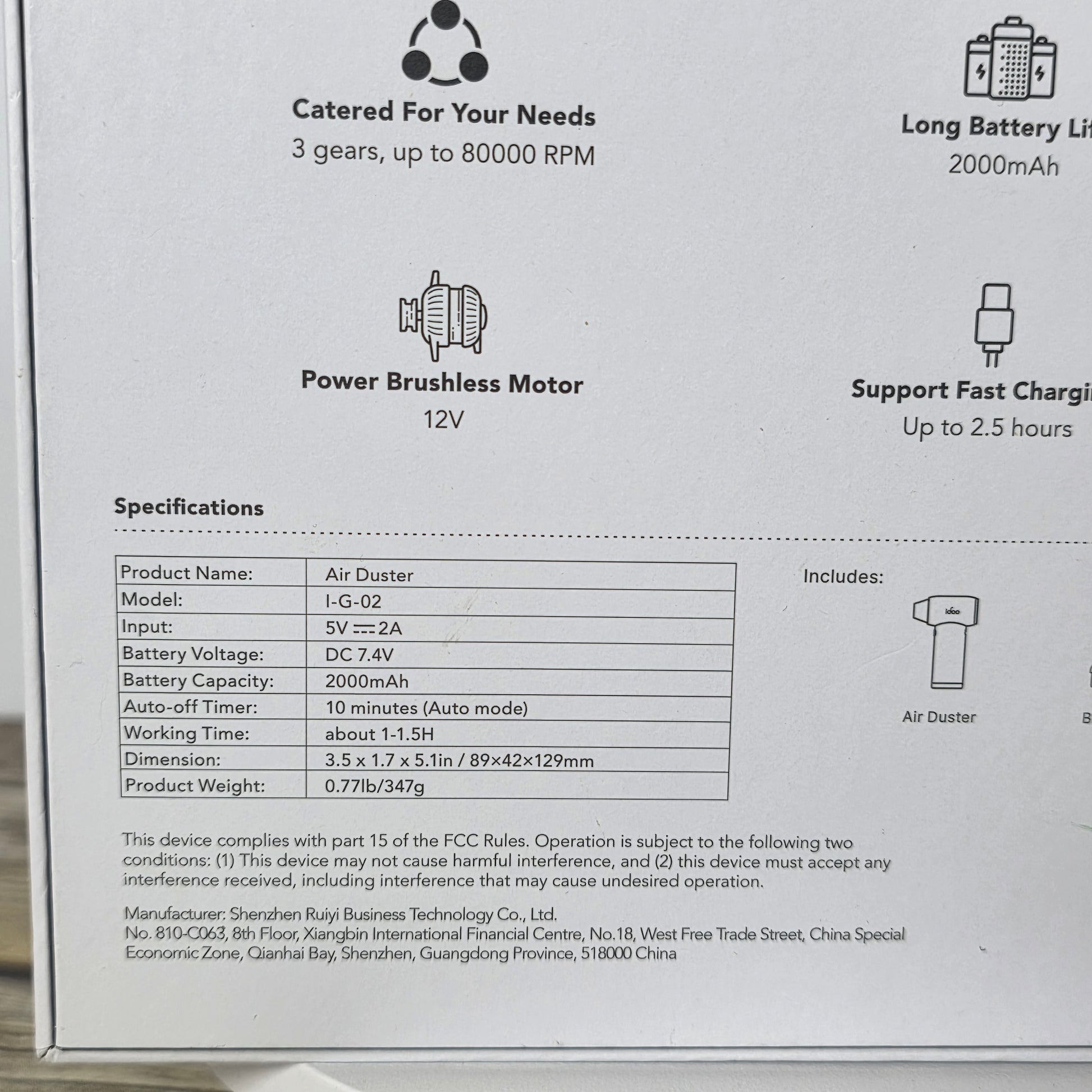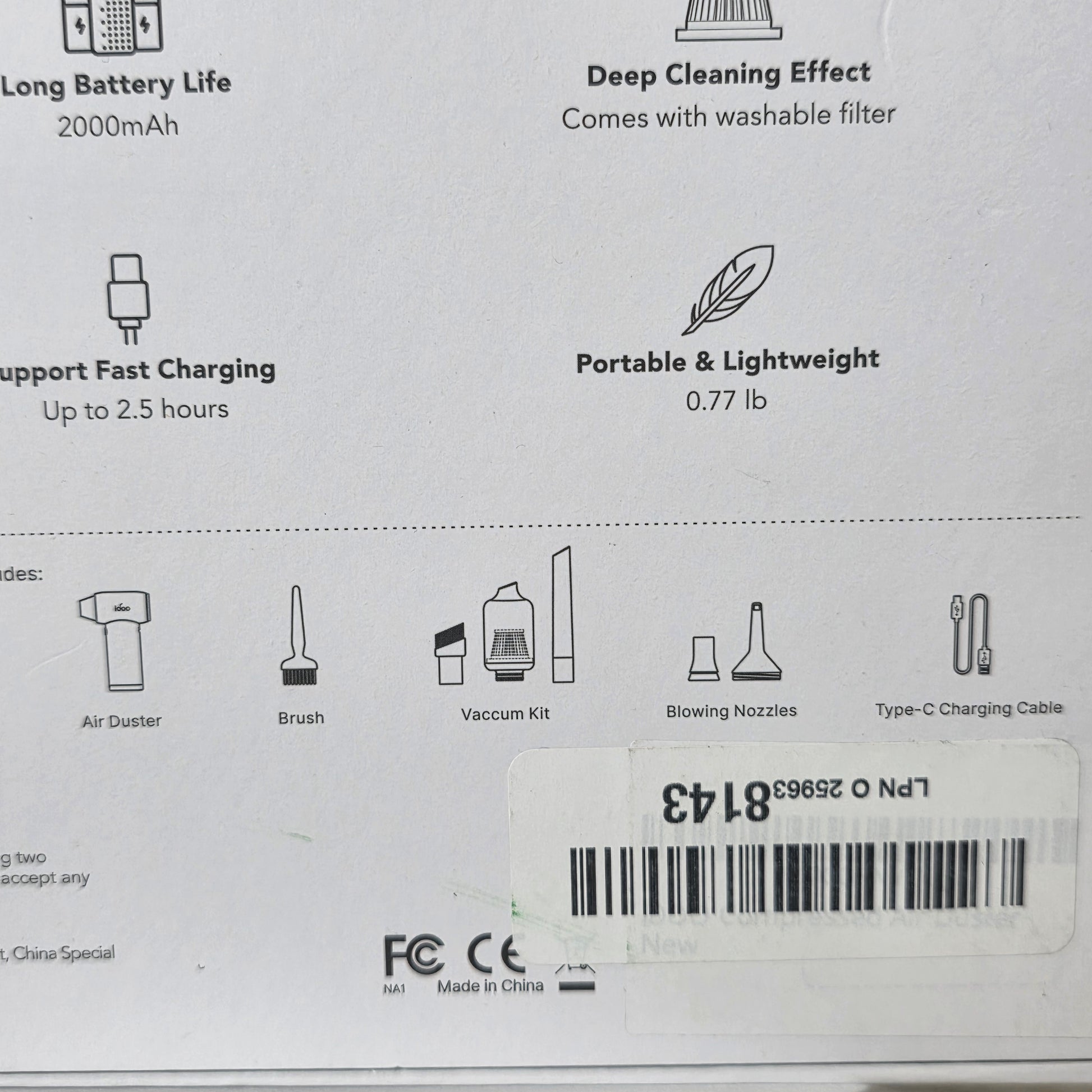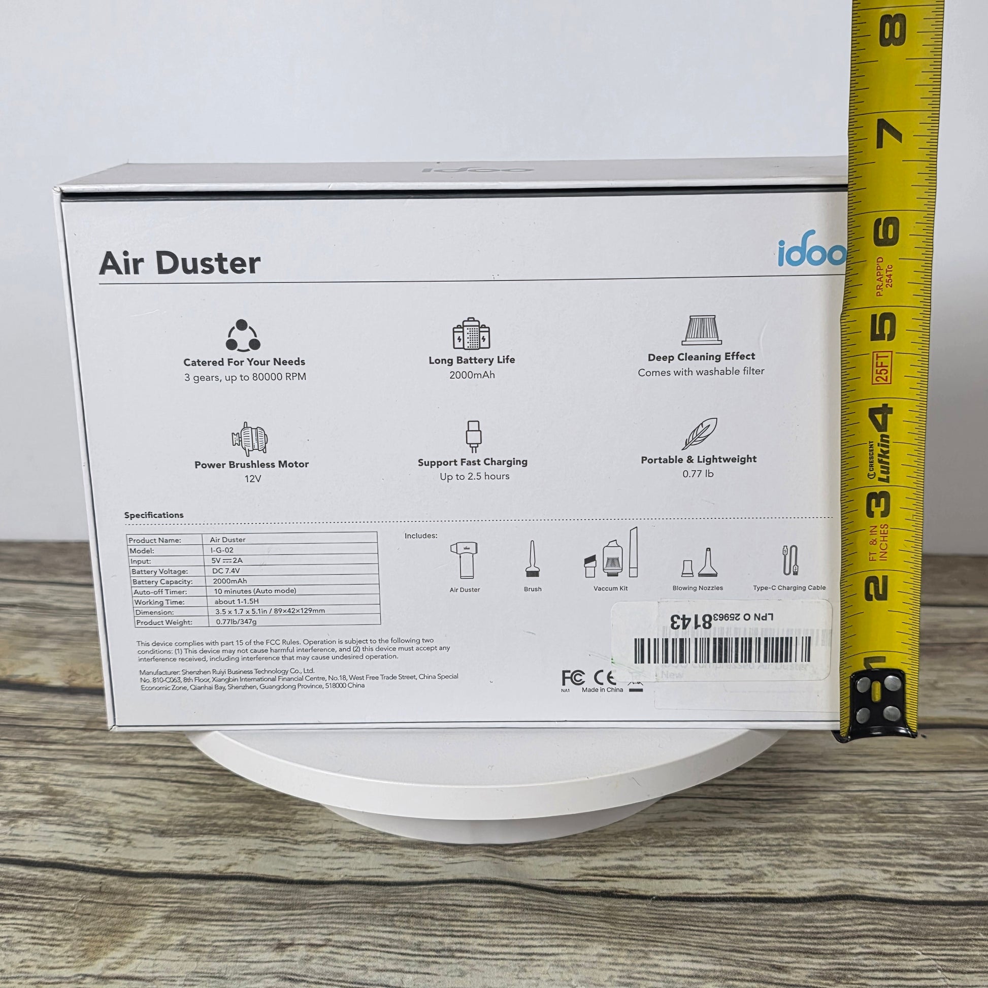 Effortlessly clean your electronics, car, and outdoor spaces with the NIOP Idoo Air Duster. Featuring a portable and cordless design, this compressed air duster offers 3 gears for customized air flow and also functions as a vacuum. Say goodbye to dust and debris with this powerful and versatile cleaning tool.