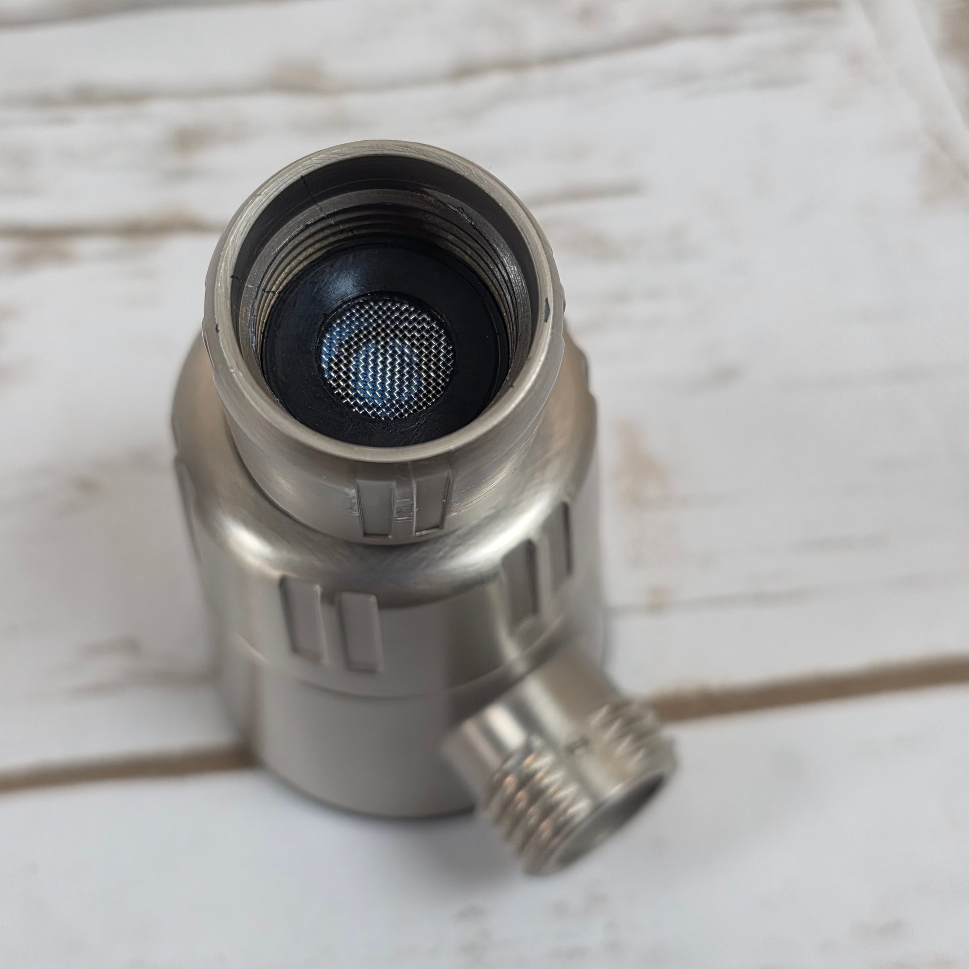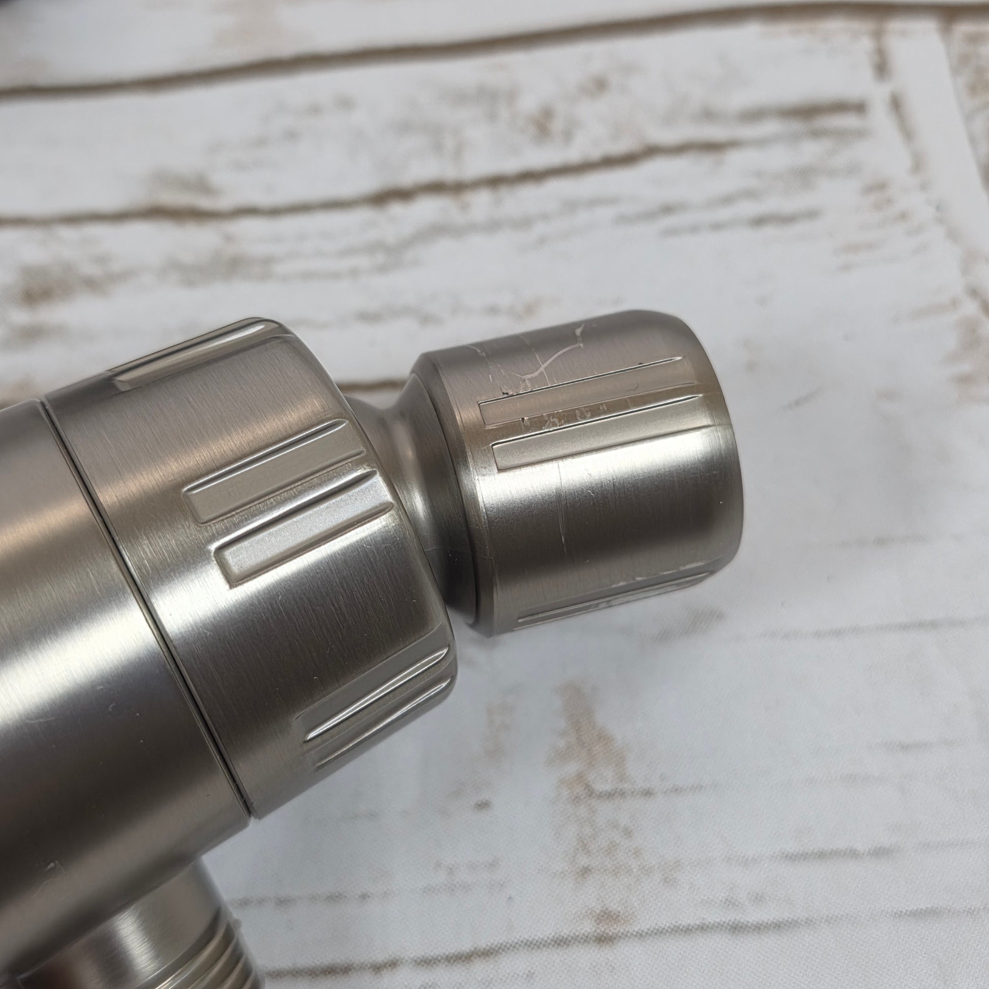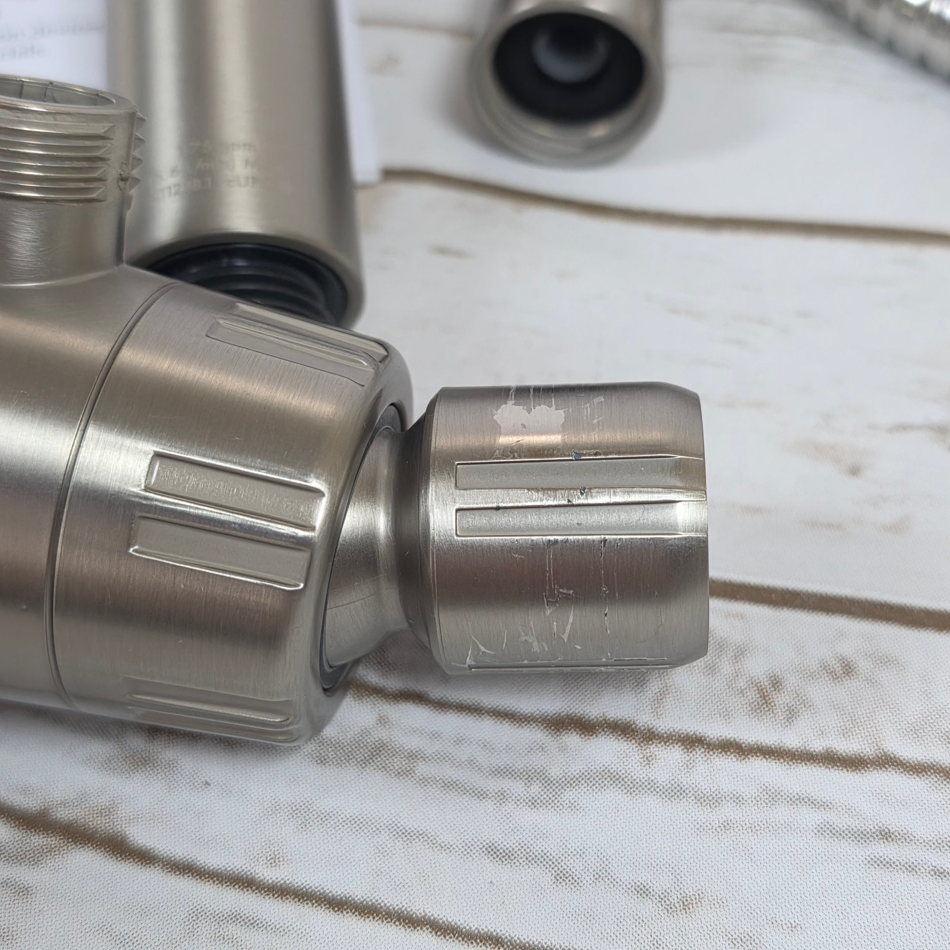 The NIOP New KOHLER Ashan Multifunction Handshower in Brushed Nickel provides versatility with its multiple spray patterns and a secure grip handle. Its brushed nickel finish adds a touch of elegance to any bathroom. Enhance your daily shower experience with this expertly designed and durable handshower. There are scratches around the neck of the one attachment, but it is clean and looks unused overall. Please see photos for details.