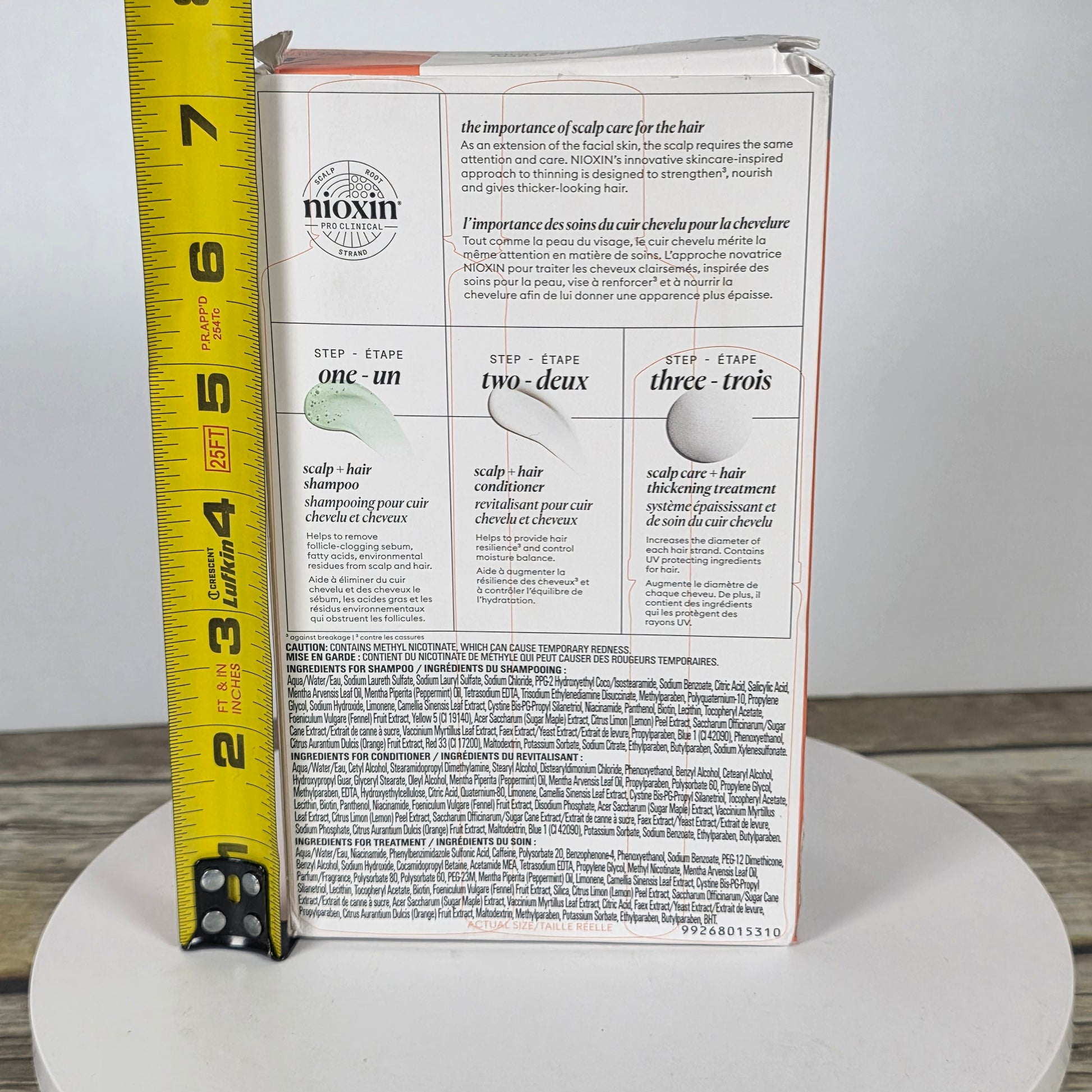 Give your hair the ultimate care with NIOP New Nioxin Scalp Care System. This all-in-one kit includes shampoo, conditioner, and thickening treatment, perfect for natural, colored, and damaged hair with light to progressed thinning. With the power of niacinamide and biotin, strengthen and boost your hair's density in just 3 months.