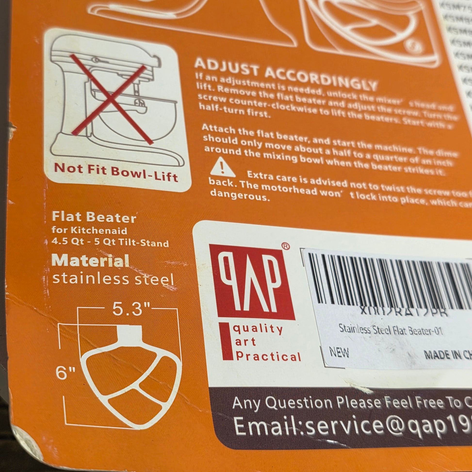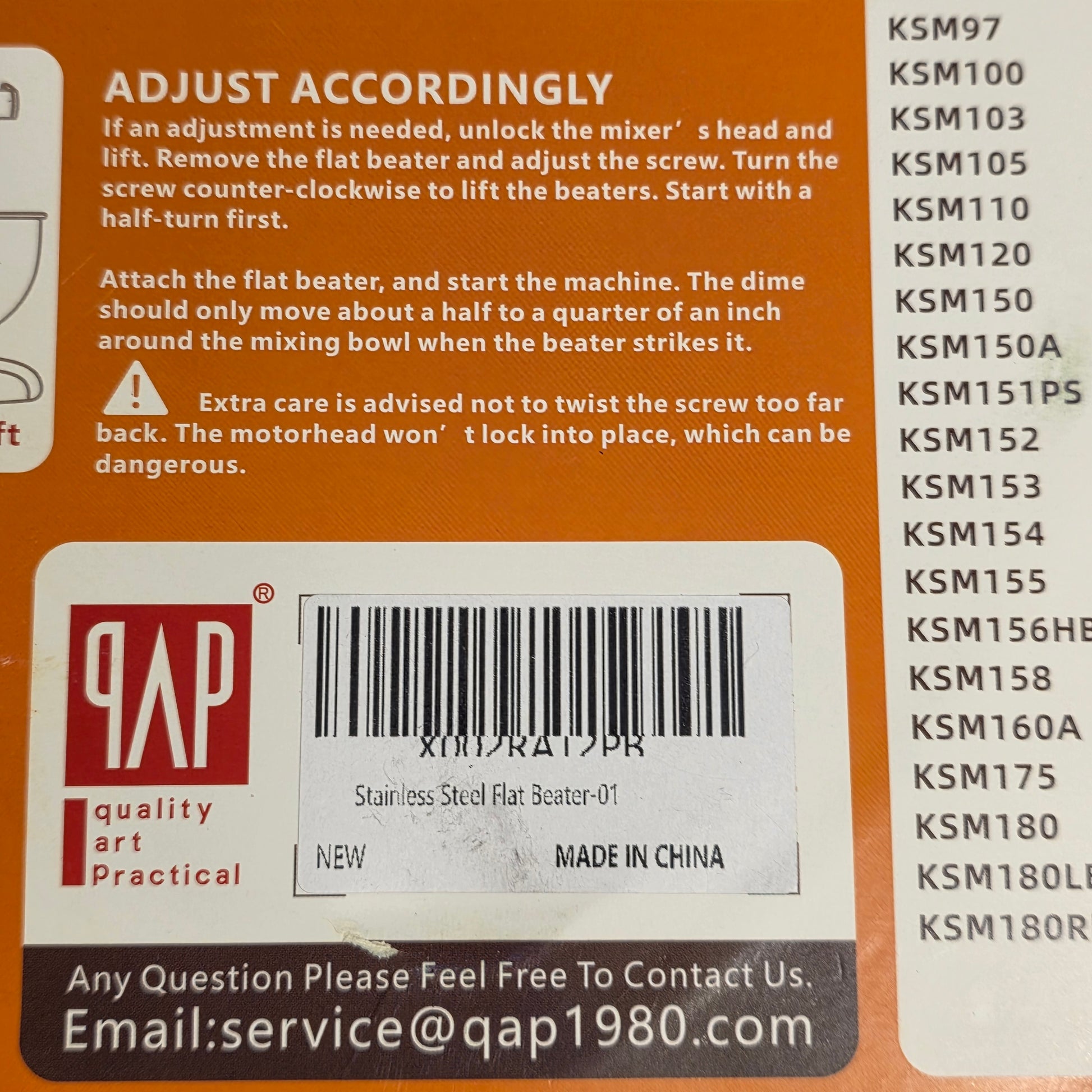 NIP New QAP Flat Beater for Kitchenaid 4.5 Qt - 5 Qt Tilt - Stand Mixer
