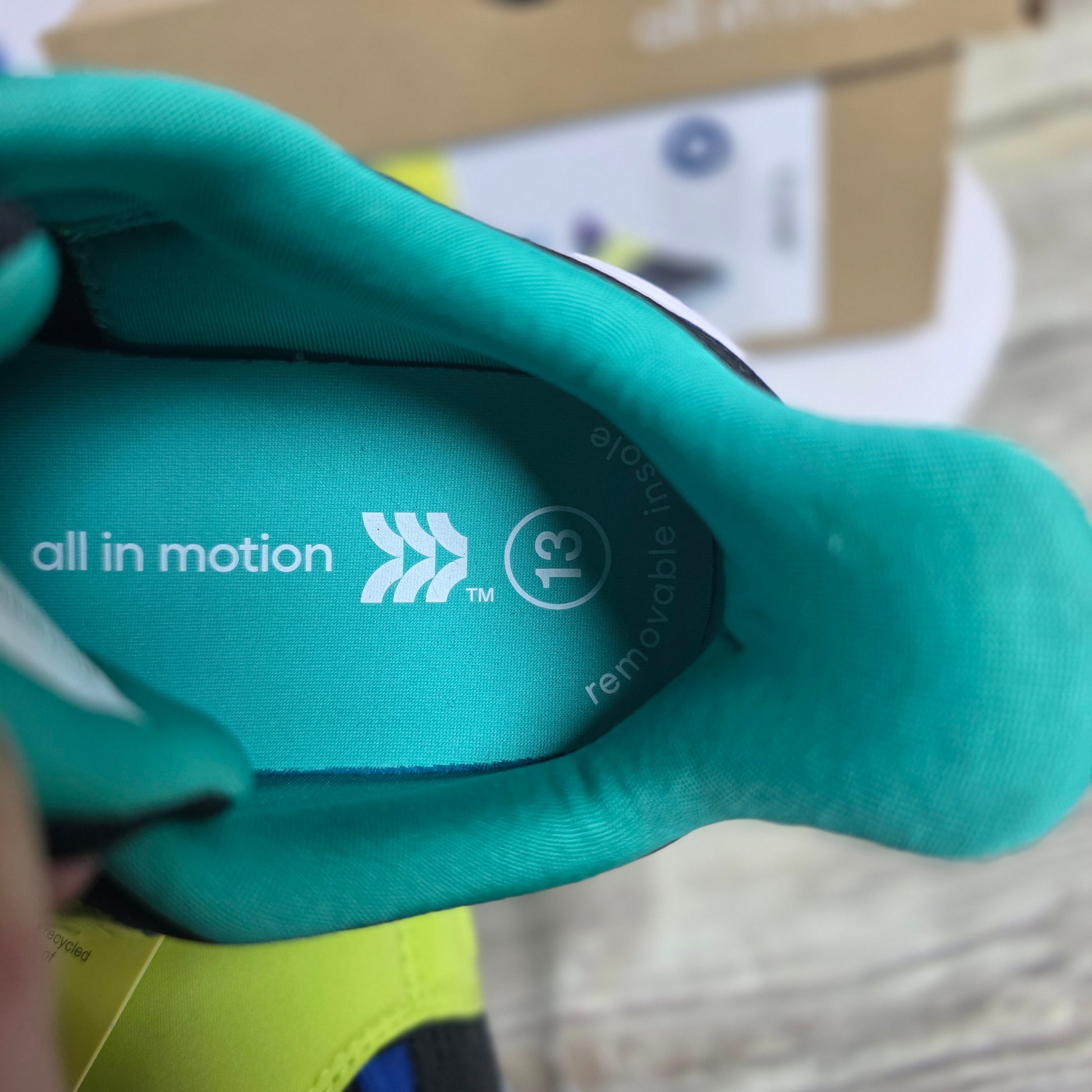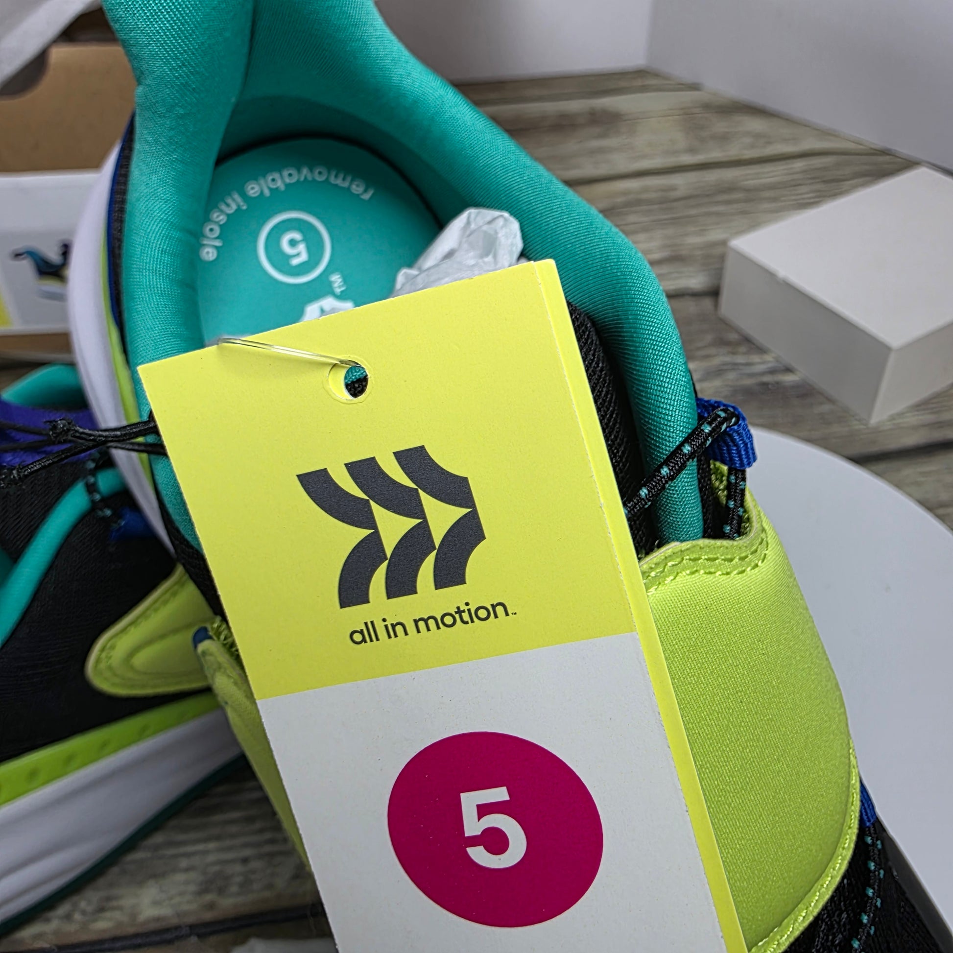 Get your little guy moving with the NWT Boy's All In Motion Fallon Sneakers! These stylish and durable shoes are perfect for active kids. Featuring a black and green design, they'll love the cool look. Available in size 13 these sneakers are a must-have for any active child.