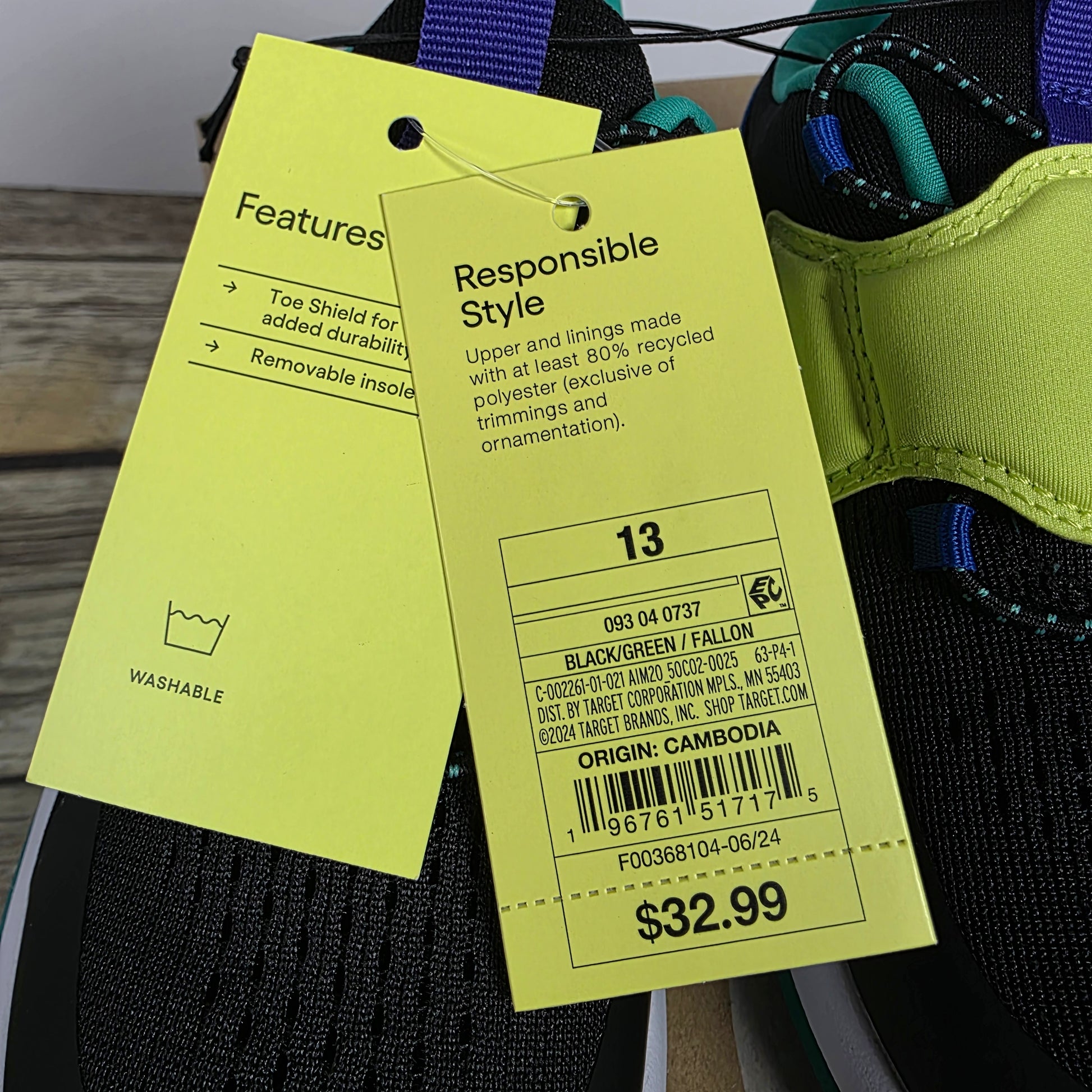 NWT Boy's All In Motion Fallon Snakers Black/Green Size 13