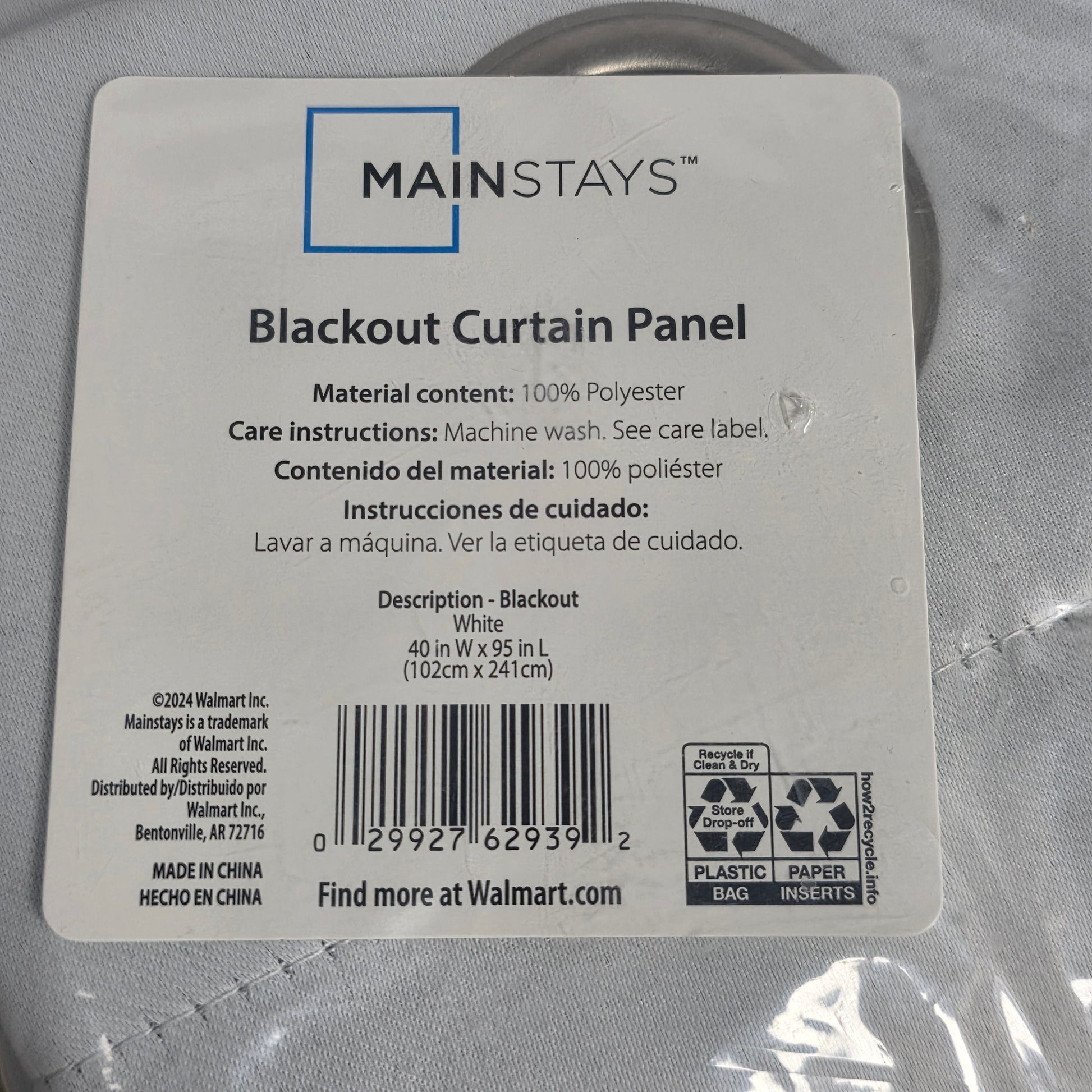 NWT New Mainstays Blackout Curtain Panel White 40x95"L
