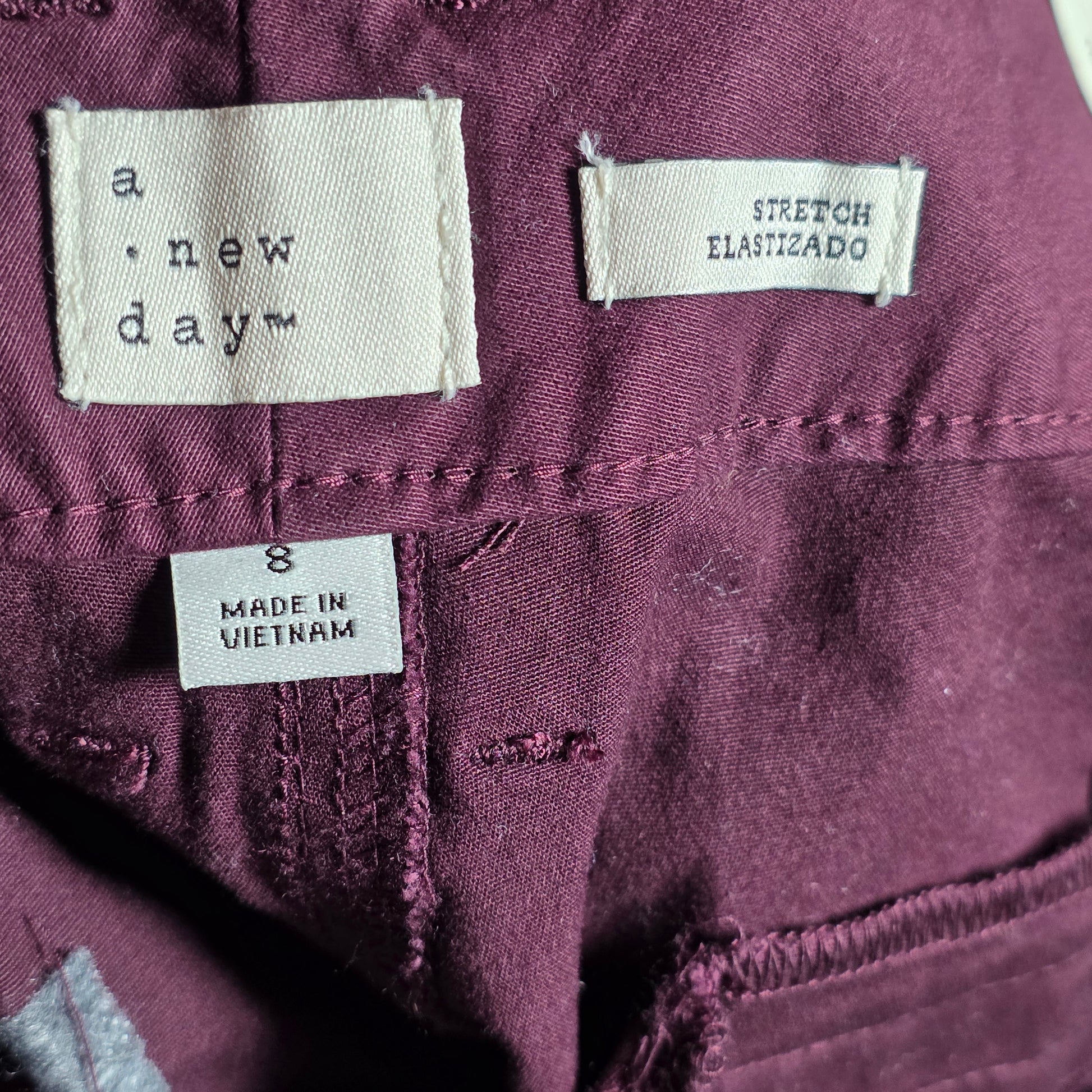 NWT New Women's A New Day Straight Leg High Rise Pants 8 R Burgundy X2EE61