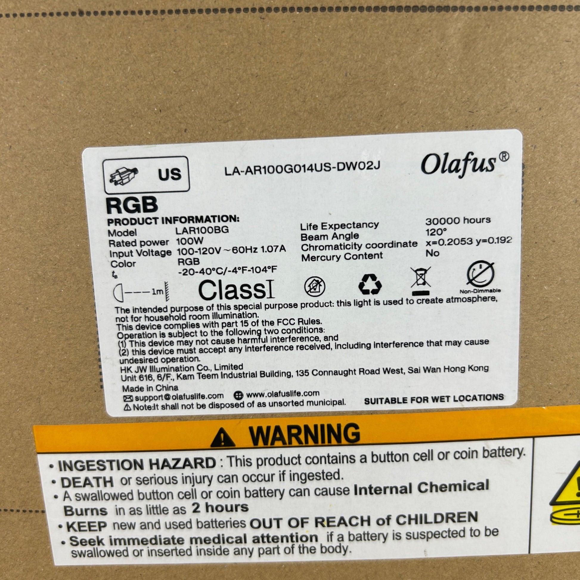 Designed for effective outdoor lighting, these 100W Olafus RGB LED floodlights offer vibrant multi-color options, a wide 120° beam angle, and IP66 waterproof durability.