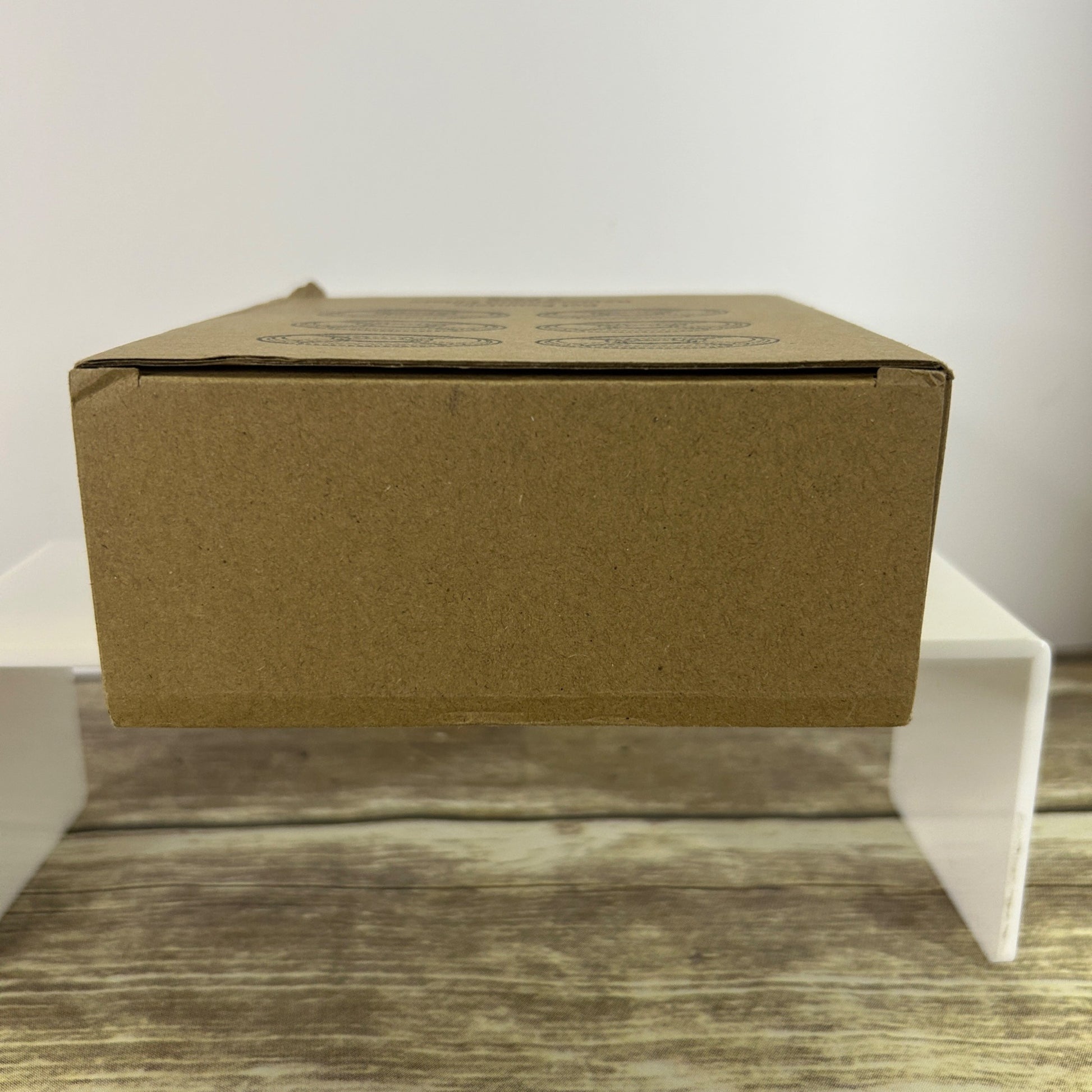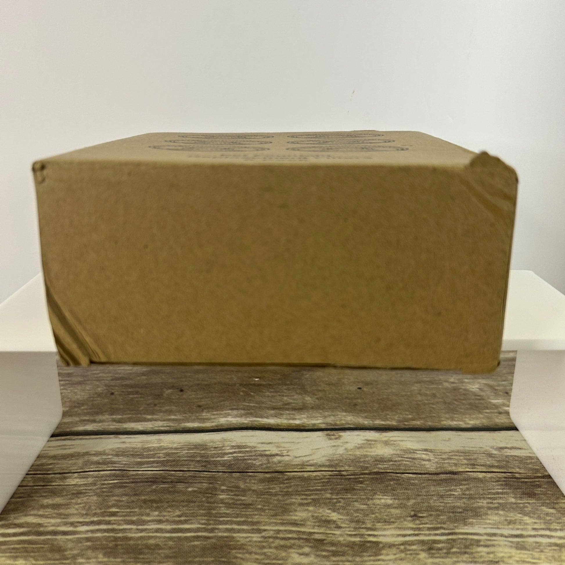 Box has minor dents and scratches on edges. Diameter = 5 inches.