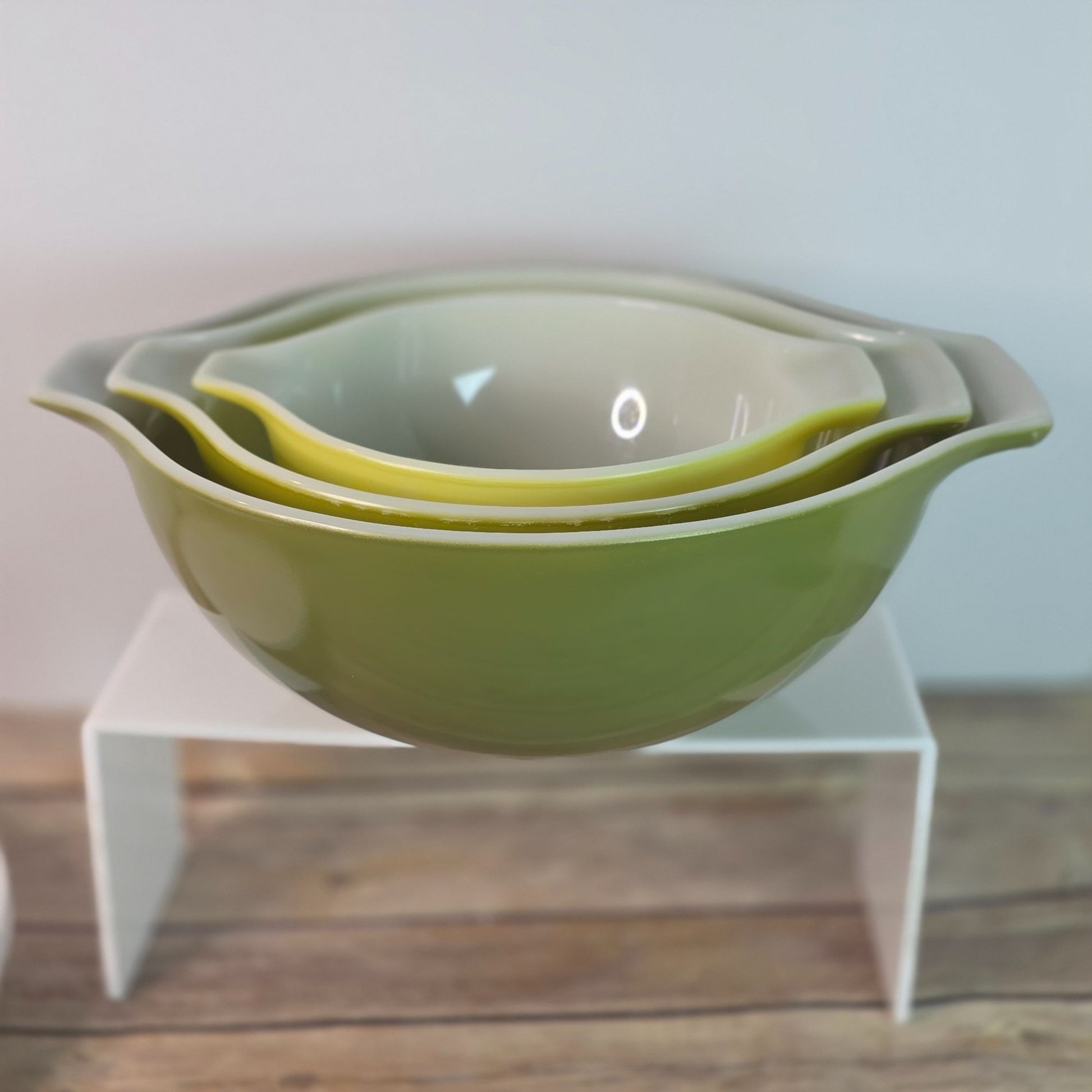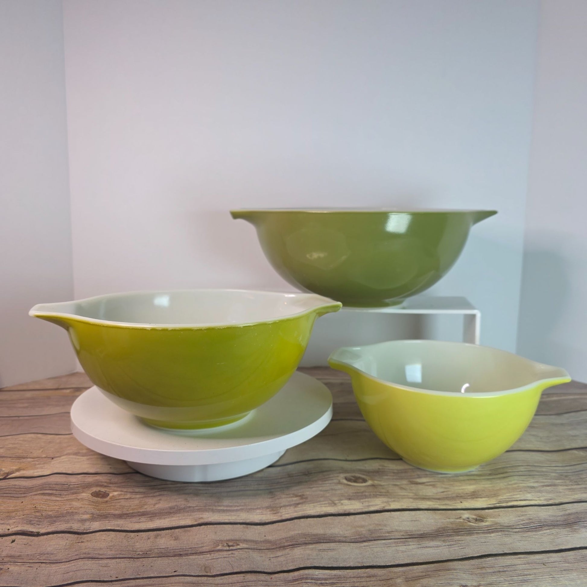 Pyrex Verde Green Cinderella Nesting Glass Bowls Set Of 3