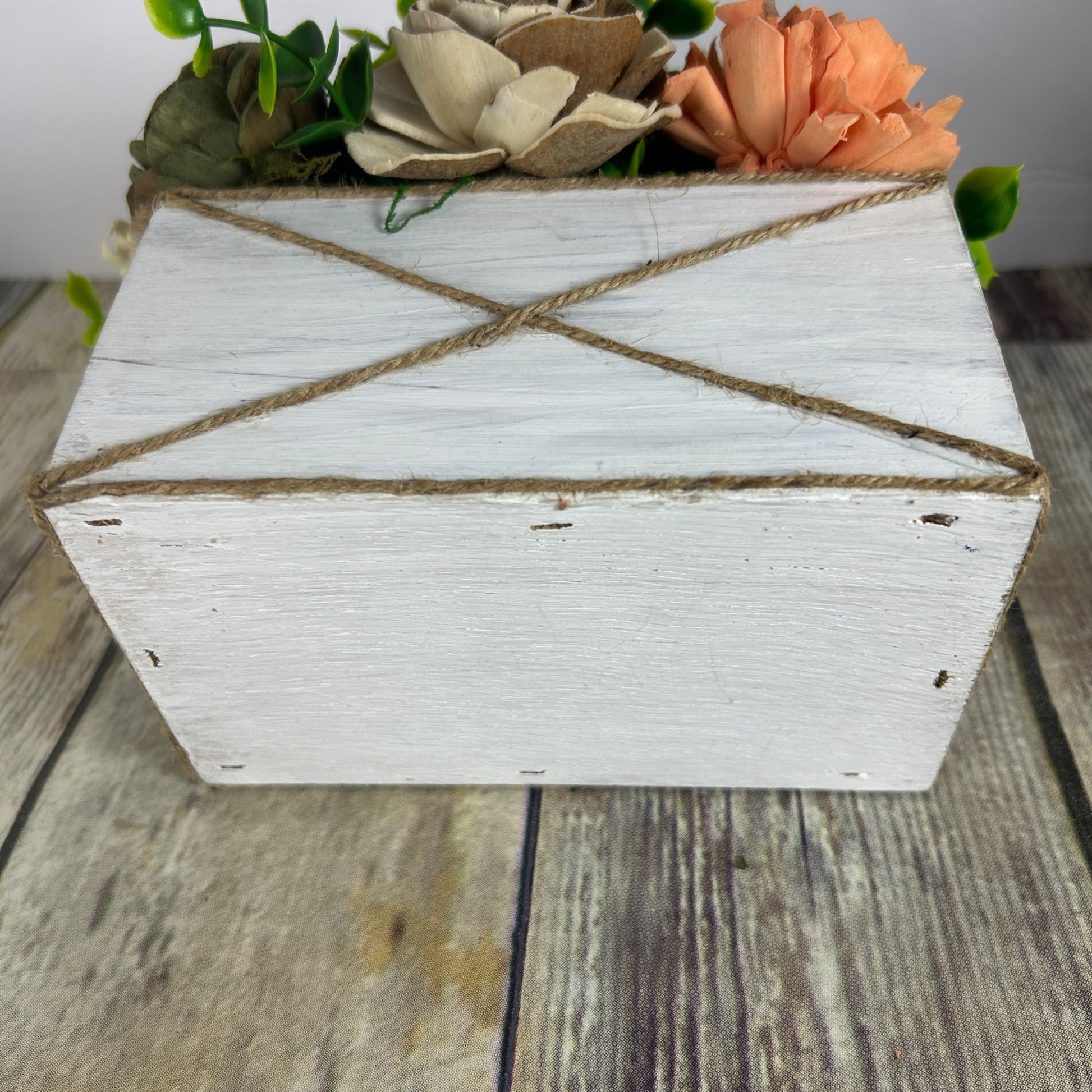 Rustic Sola Wood Flower Arrangement In White Wooden Box