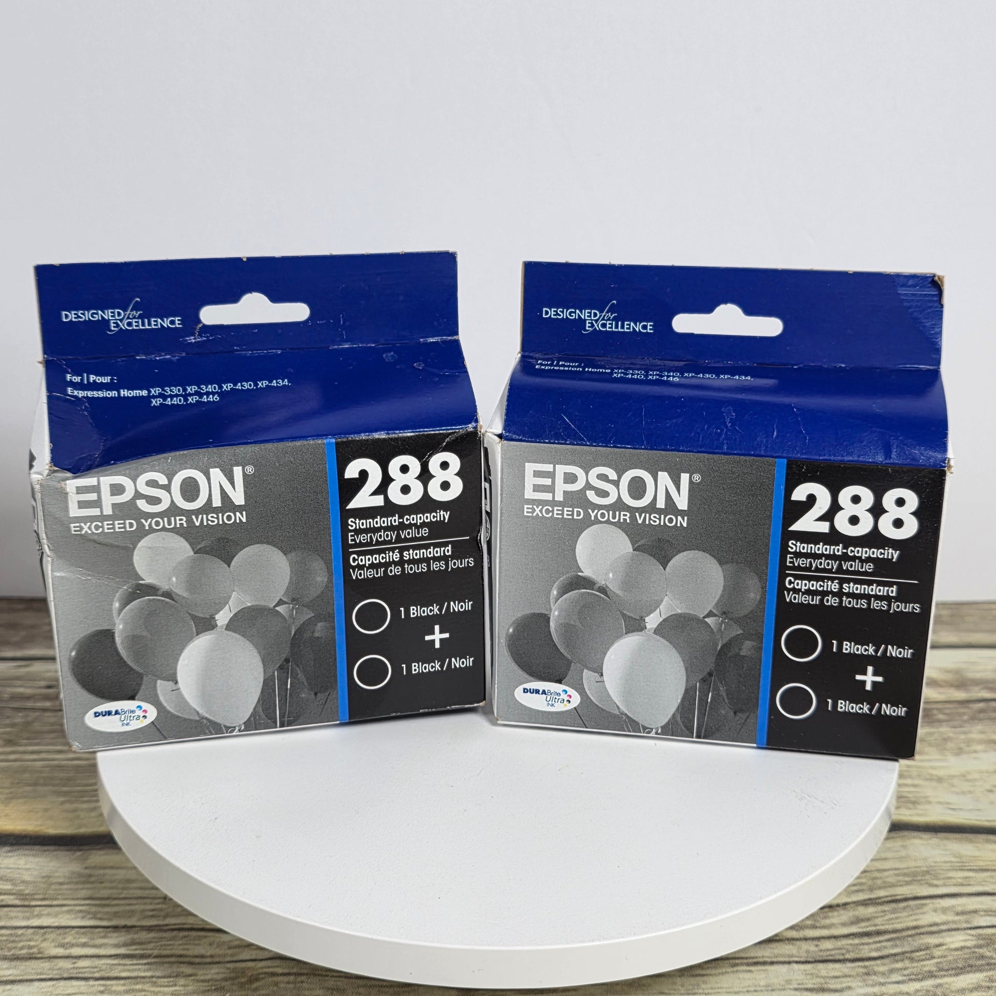 This set of 2 New EPSON 288 Standard Capacity DuraBrite Ultra Ink Cartridge 2-Packs is designed to provide high-quality, long-lasting prints. With its advanced DuraBrite Ultra ink technology, these cartridges deliver vibrant colors and smudge-resistant prints. Perfect for all your printing needs.