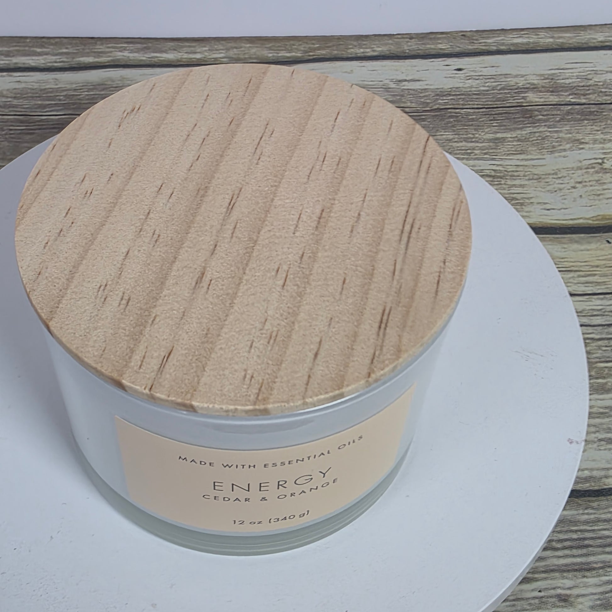 Set of 4 New Threshold 12oz Energy Cedar & Orange 3 Wick Glass Candles
