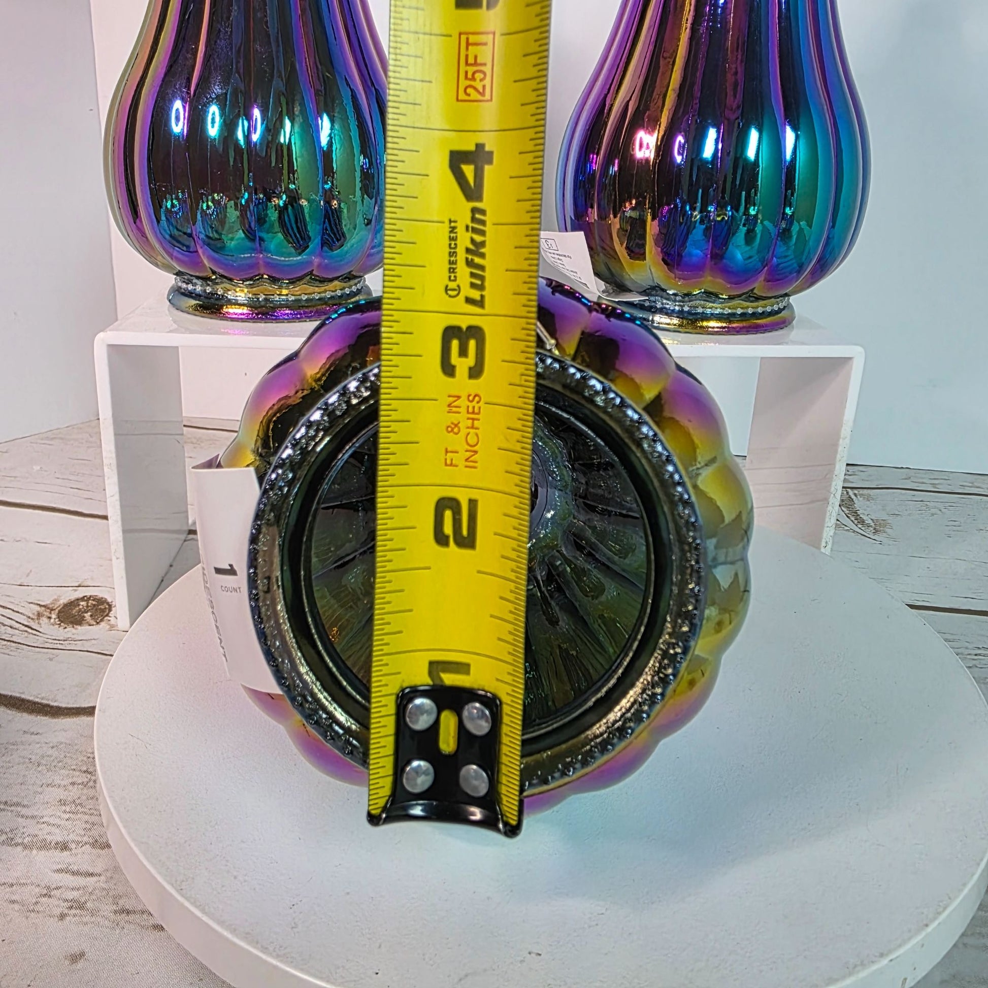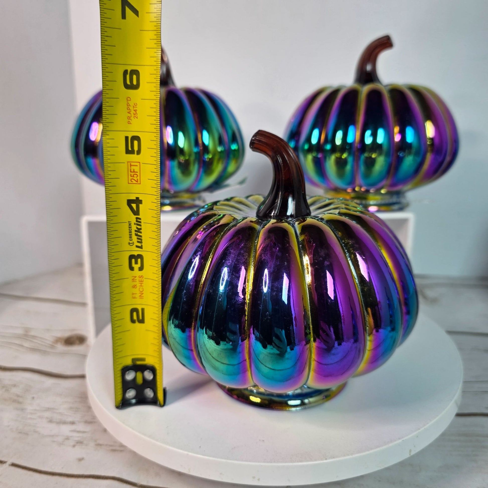 Set Of 6 Dark Iridescent Glass Pumpkins & Gourds 5" Tall Decorative Accents