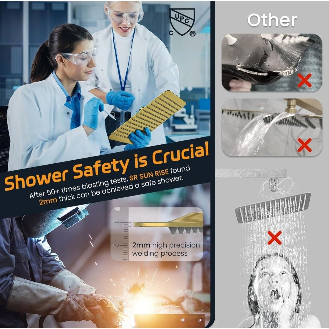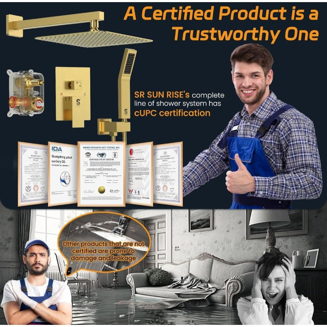 SR Sun Rise Luxury Rain Shower System With Handheld Brushed Gold Finish H59 Brass Build cUPC Certified Model SRSH-BG1003