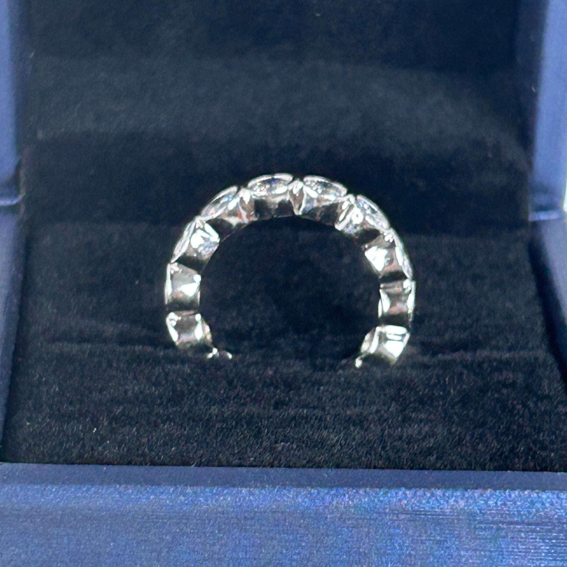 This Italo exquisite sterling silver ring showcases a row of dazzling white sapphires, each encased in a secure bezel setting. The lustrous sapphires catch the light beautifully, creating an eye-catching sparkle. Crafted from nickel-free materials, this piece ensures comfort for sensitive skin, making it both a stylish and thoughtful choice.
