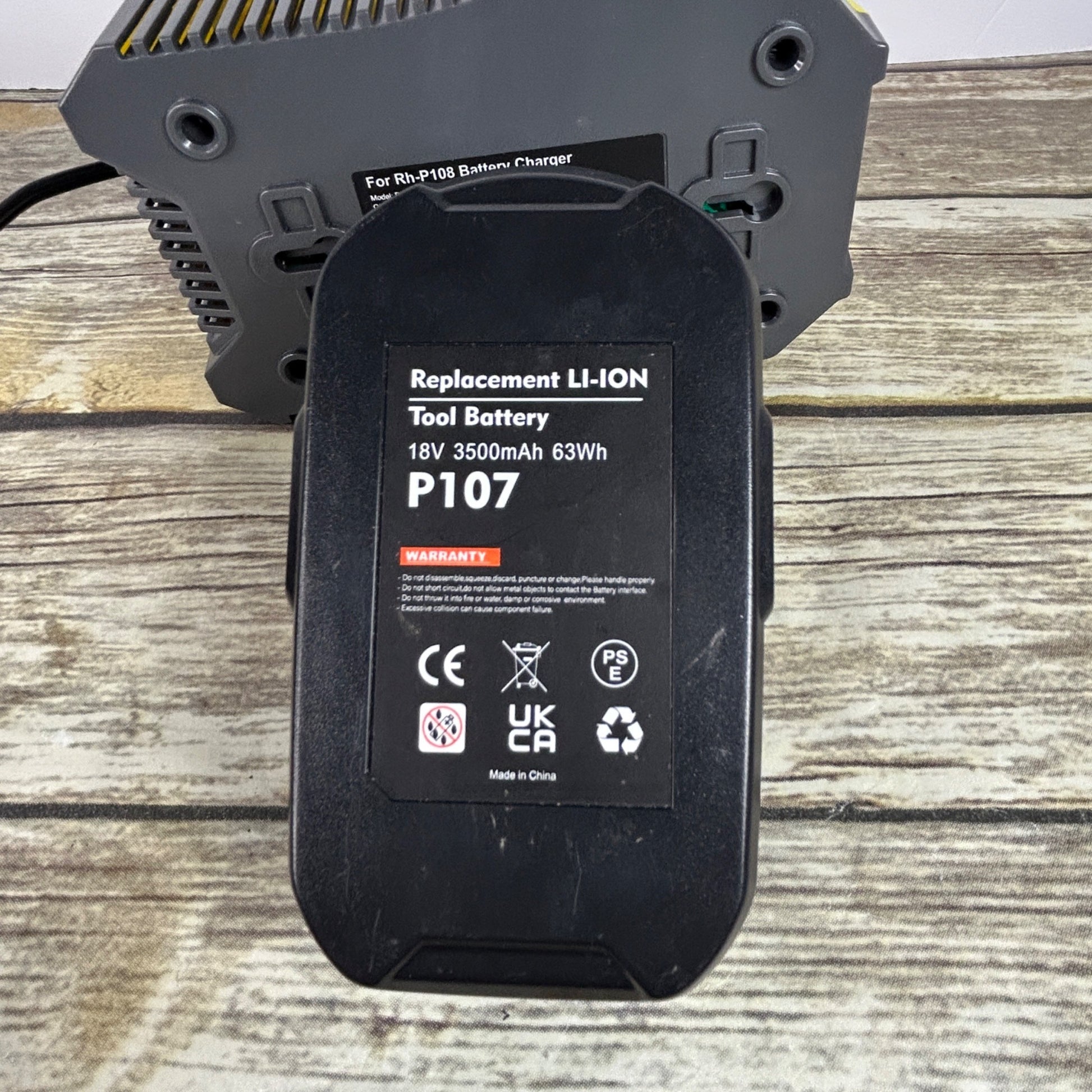 Ultimate RH-P108 Battery Charger Ryobi Rapid Charge Compatible & 1 P107 18V Lithium-Ion 1.5mAh Battery Set
