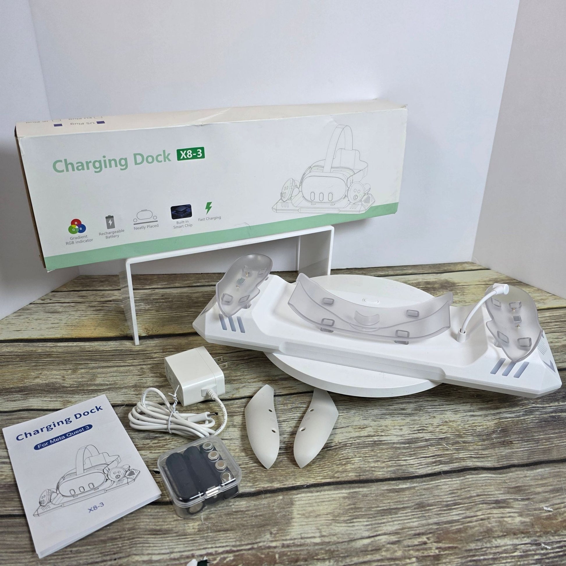 Charging Dock for Meta Quest 3/Quest 3S, Magnetic Charging Station for Oculus Quest 3 VR Headset & Controllers, with 2 Rechargeable 2100mAh Batteries, USB-C Charger and Cable, Supports LED Indicator