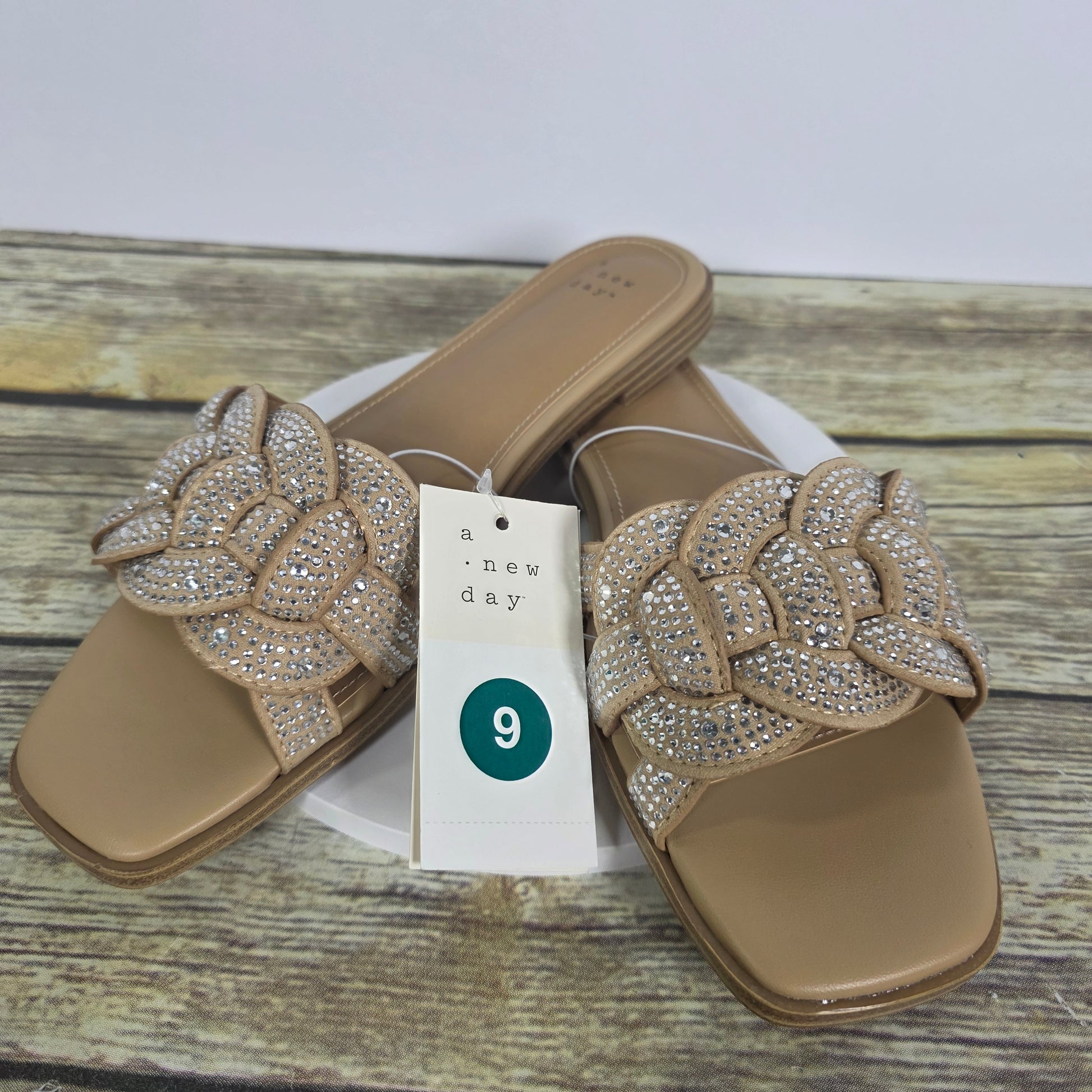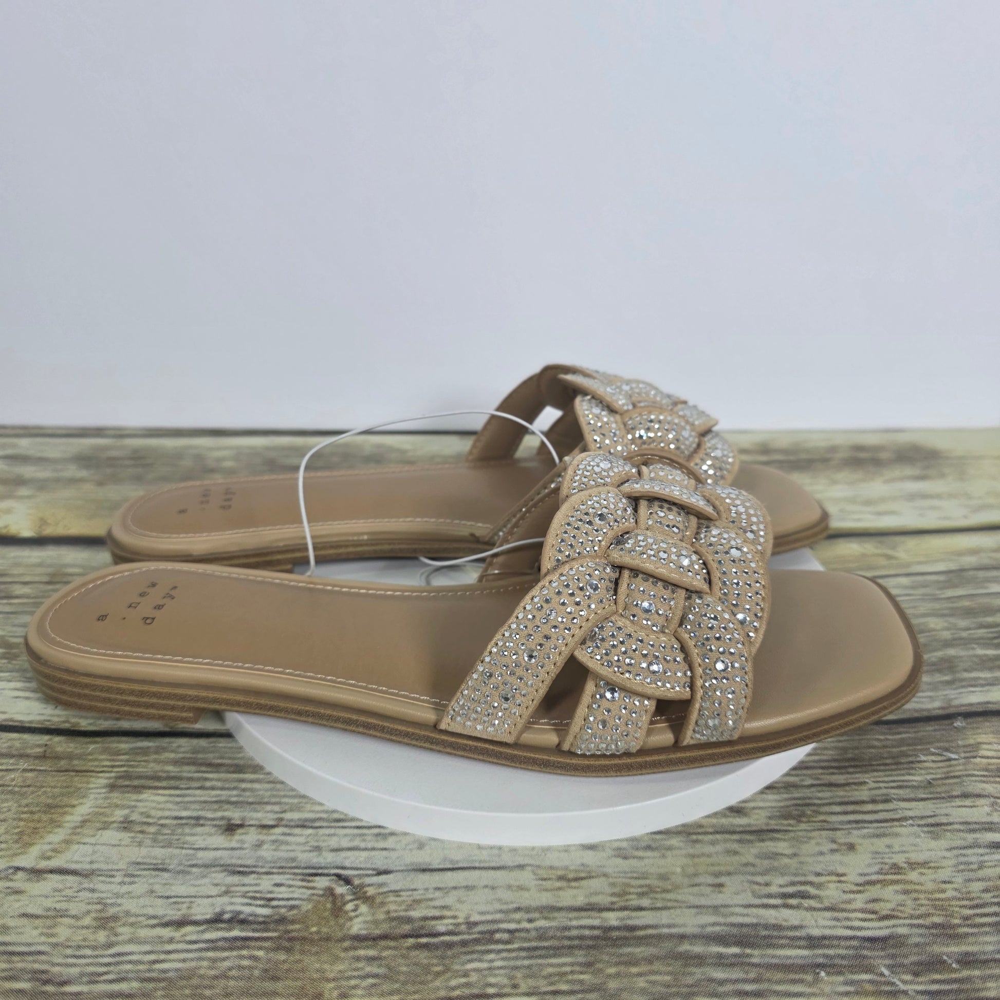 Introducing the NIB New A New Day Maggies Sandals! Slip into these playful slides and add a touch of whimsy to your outfit. The silver color and size 9 make them a perfect addition to any wardrobe. Start your day off on the right foot with these quirky and fun sandals.