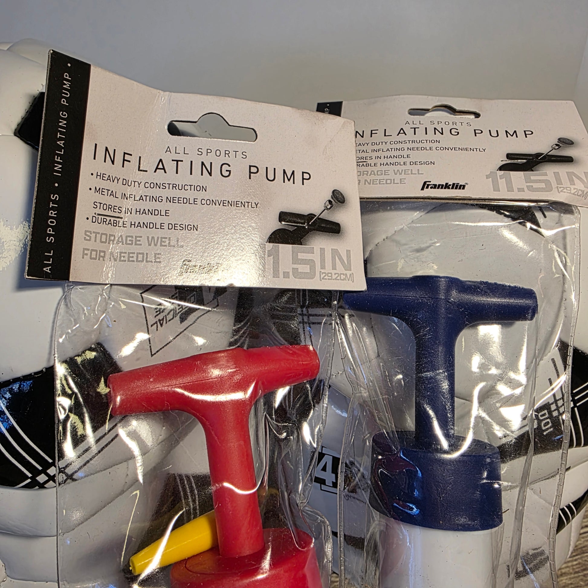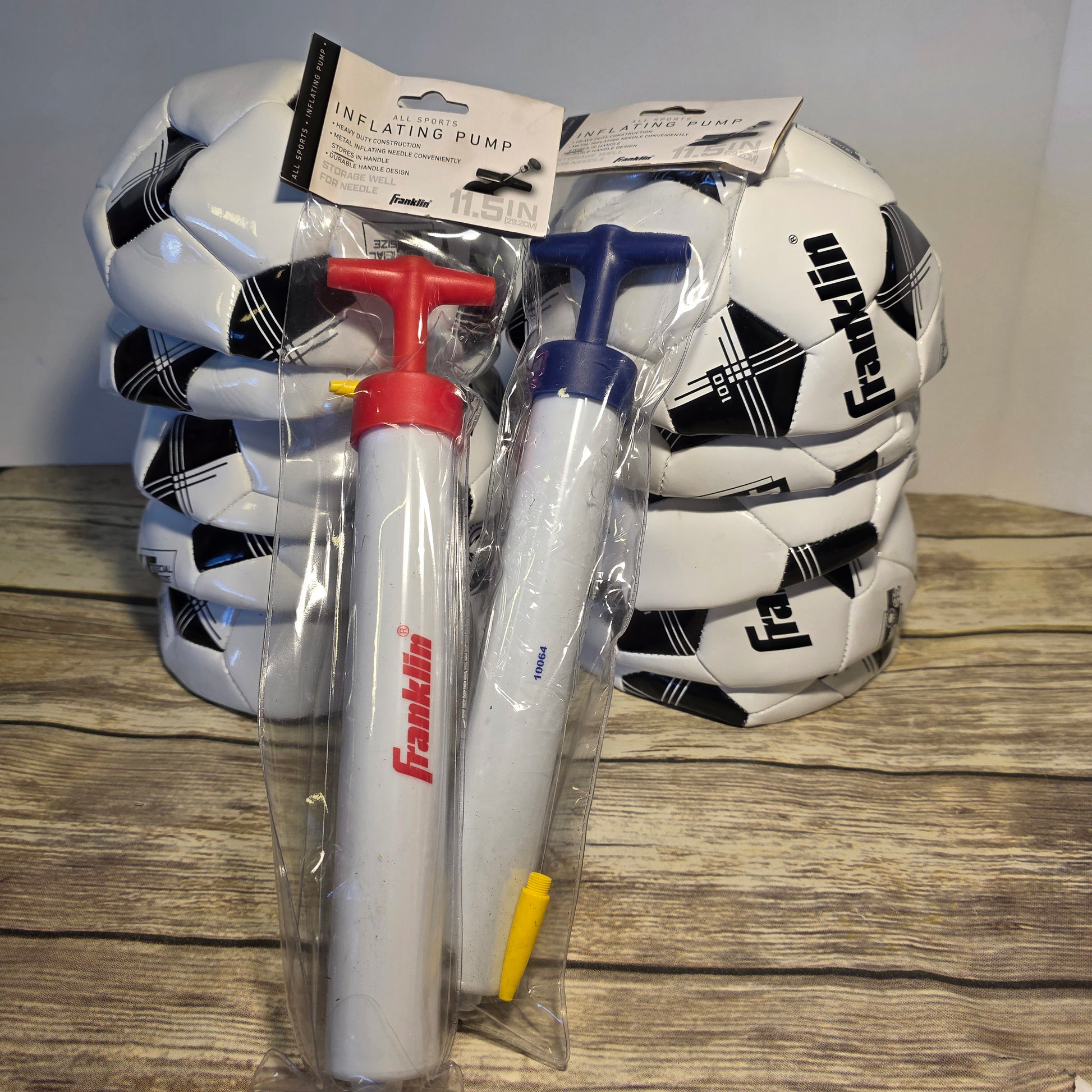 Score a goal with this bundle of 10 FRANKLIn Soccer Balls and 2 handy pumps! Perfect for pick-up games and practice sessions, these durable balls and pumps will keep the fun going for hours. Kick, shoot, and pump your way to victory with FRANKLIn!
