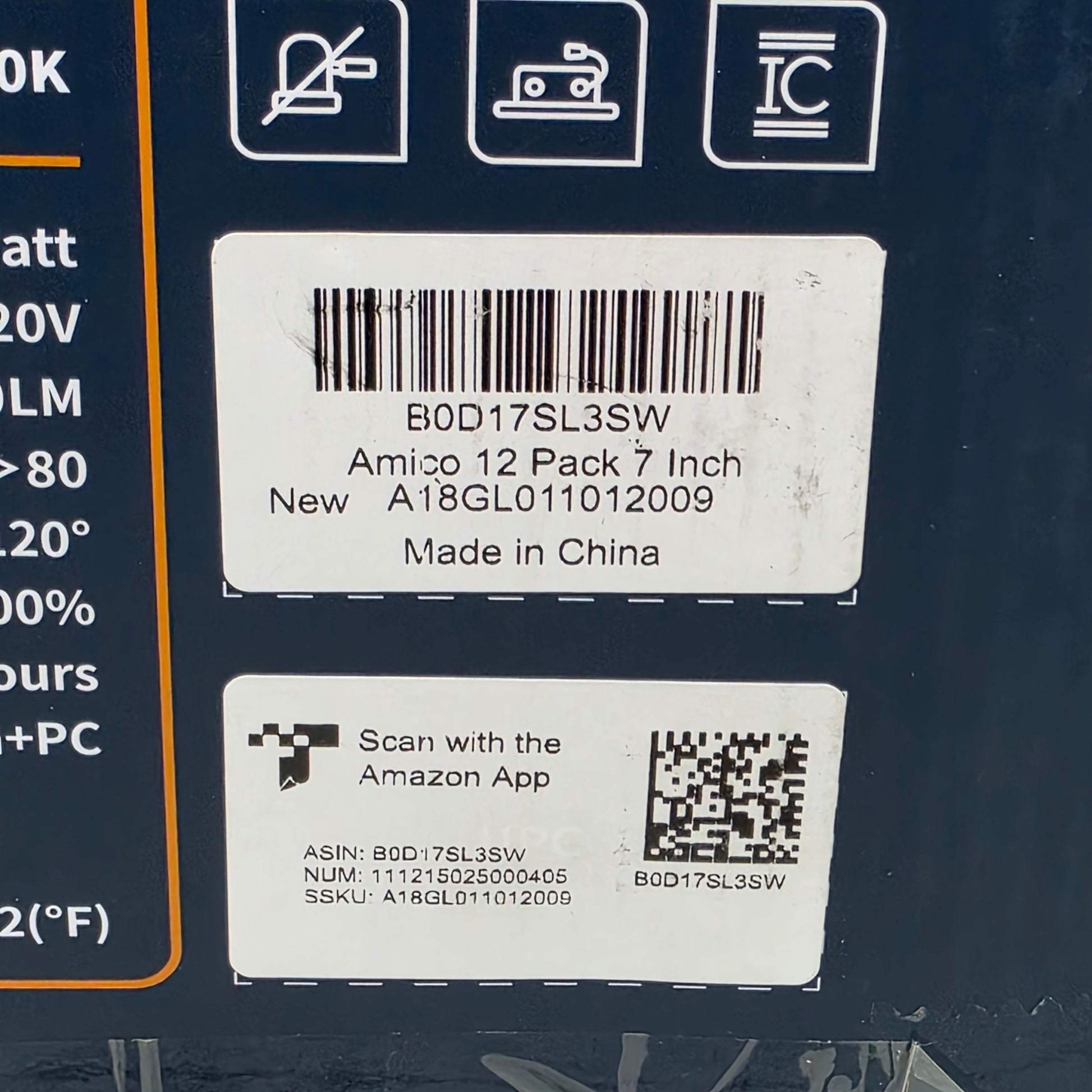 NIOB New Amico 12-Pack 7" 5CCT IN 1 LED Recessed Light A18GL011012009