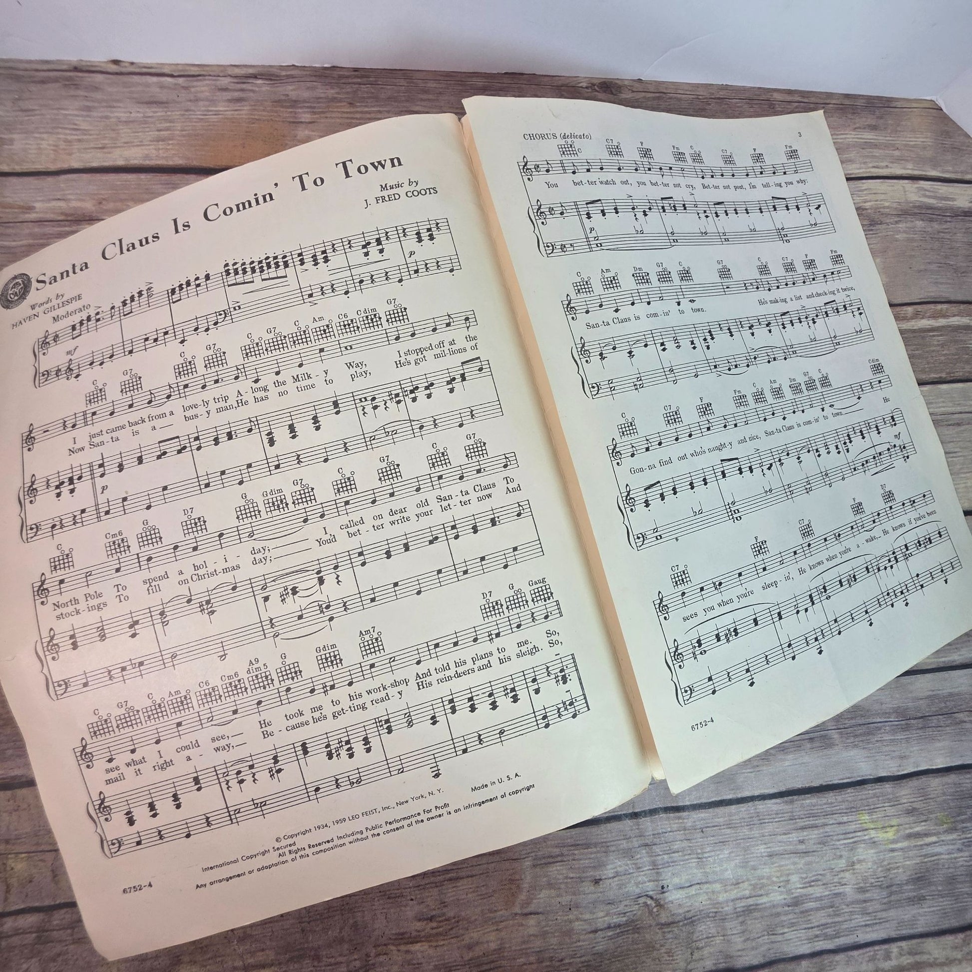 An enchanting piece of musical history, this vintage sheet music from the 1950s features the beloved holiday classic "Santa Claus Is Comin' To Town". With arrangements suitable for organ, it evokes nostalgia and joy, embodying the spirit of the holiday season. The sheet music is adorned with charming illustrations of Santa and his reindeer, a delightful addition to any collection for enthusiasts and musicians alike.