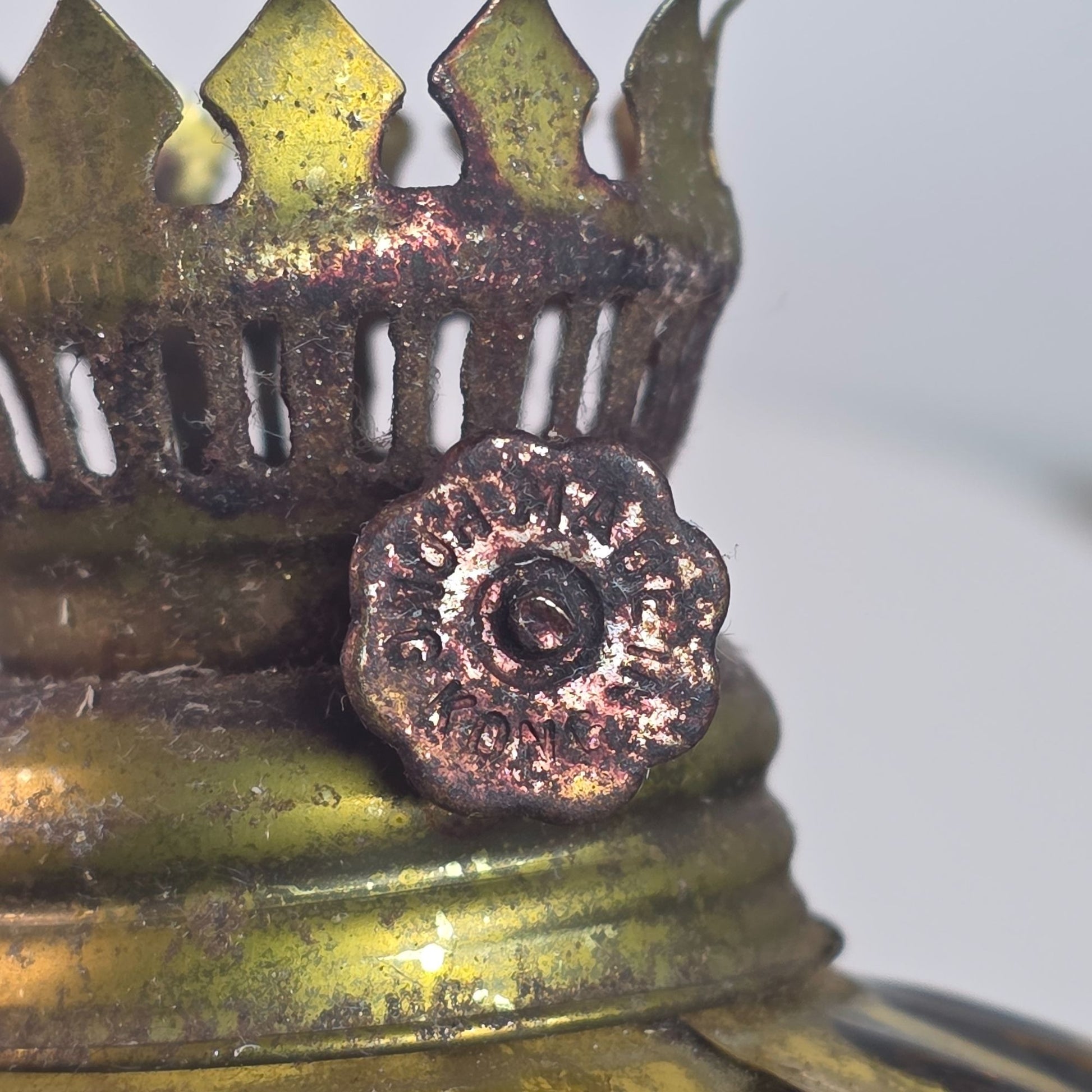 Vintage Amber Glass Oil Lamp With Ribbed Design & Metal Crown