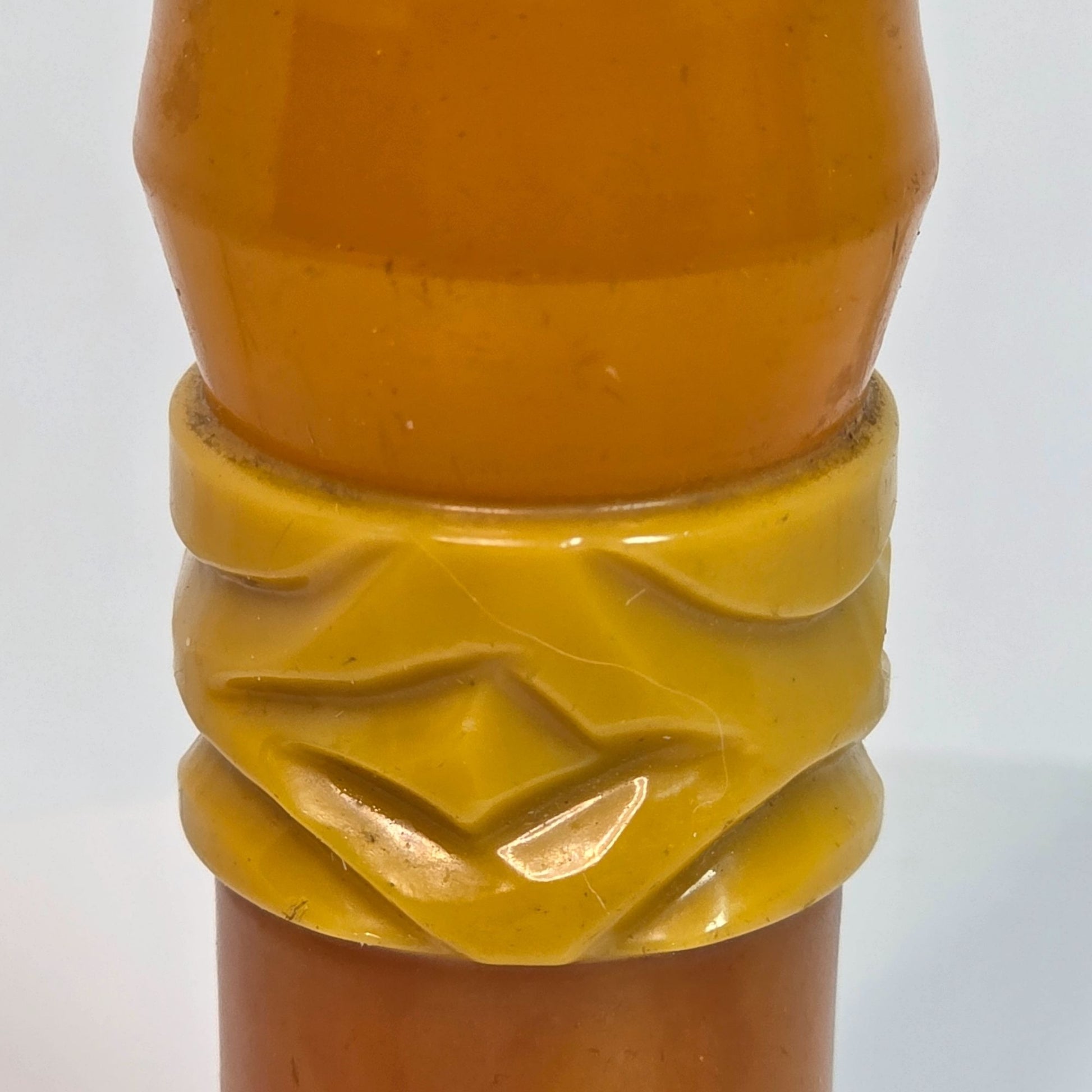 Vintage Amber & Yellow Bakelite Cane Or Umbrella Handle With Carved Detailing