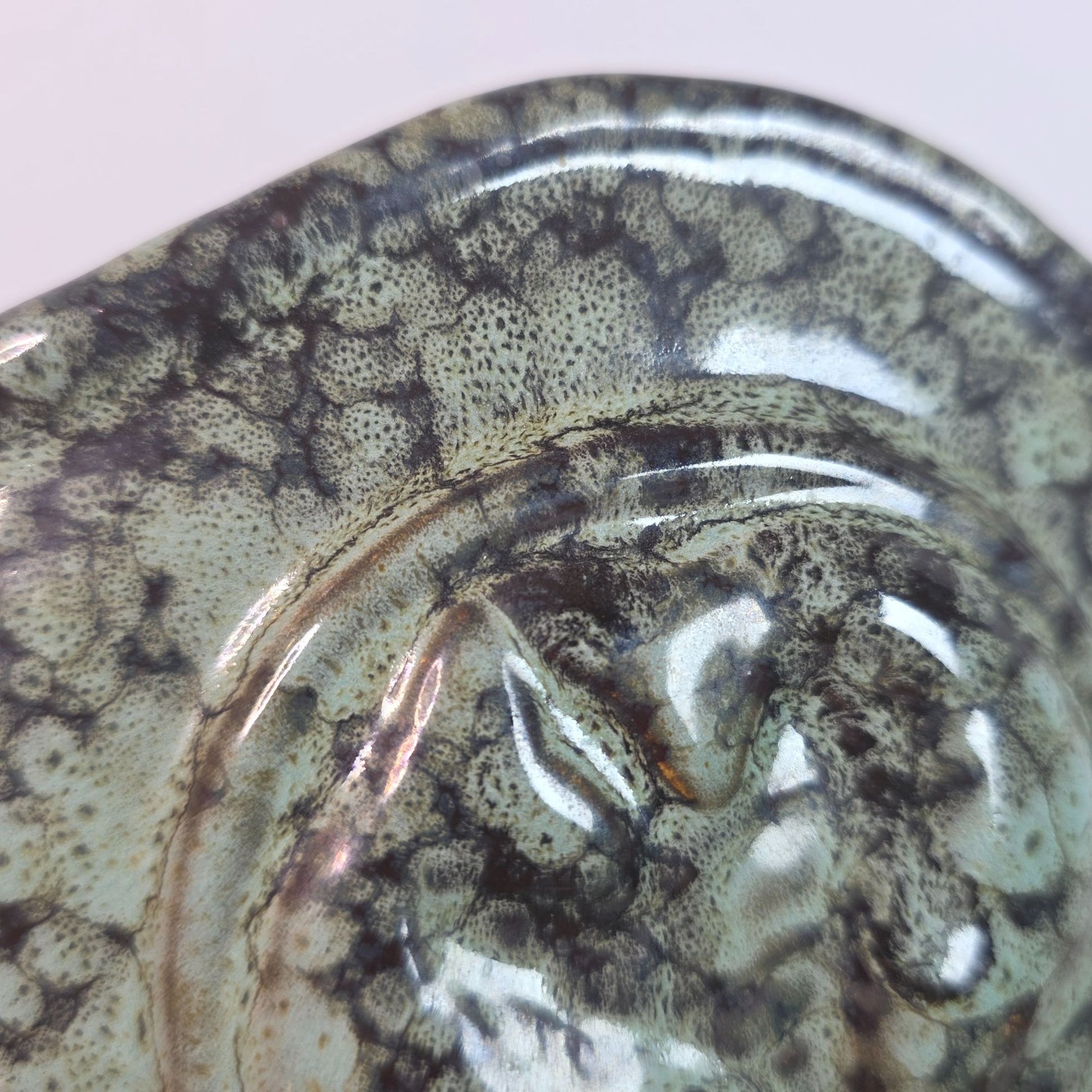A vintage ceramic vase is a delightful addition to any home decor. Its mid-century design and intricate textured glaze provide an aesthetic touch that complements various styles. The vase's elegant handles and unique form make it a striking centerpiece, while its versatile size allows for practical use as a planter or simply a decorative piece.