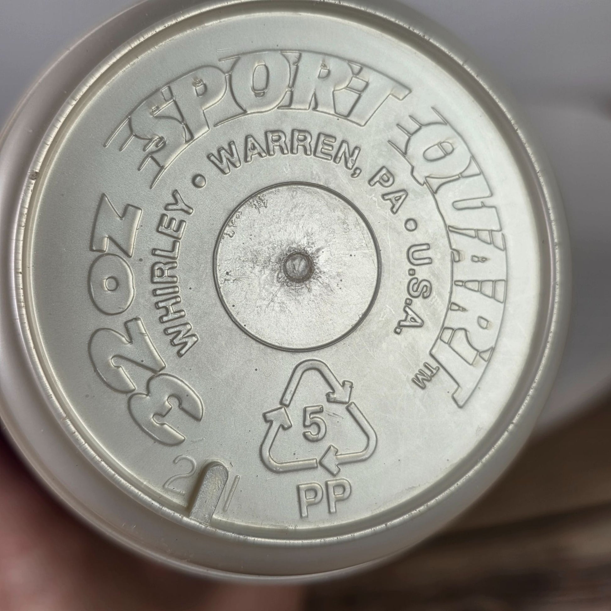 The cup has visible scratches and signs of wear consistent with its vintage nature.