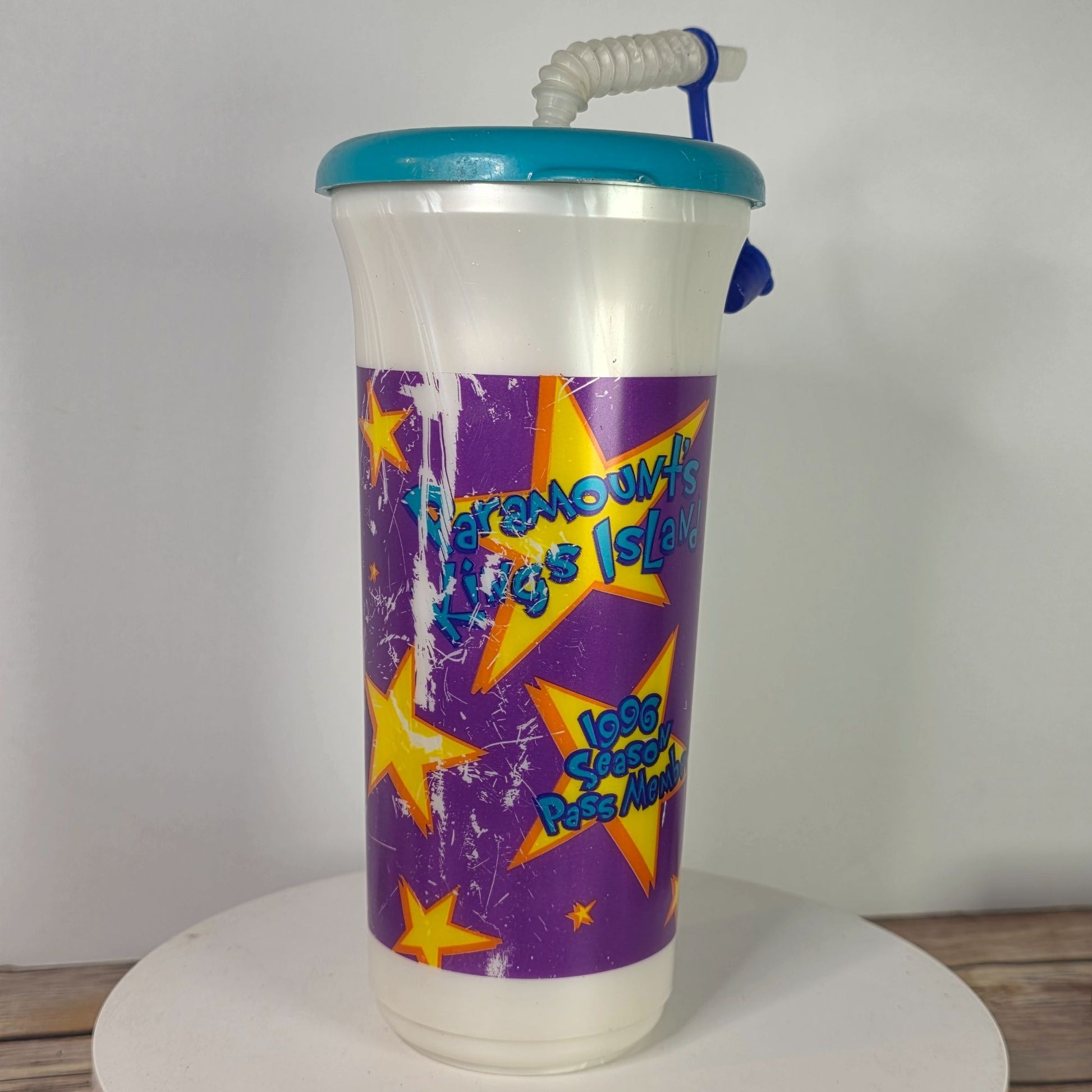 Vintage Paramounts Kings Island 1996 Season Pass Member Souvenir Cup With Lid & Straw