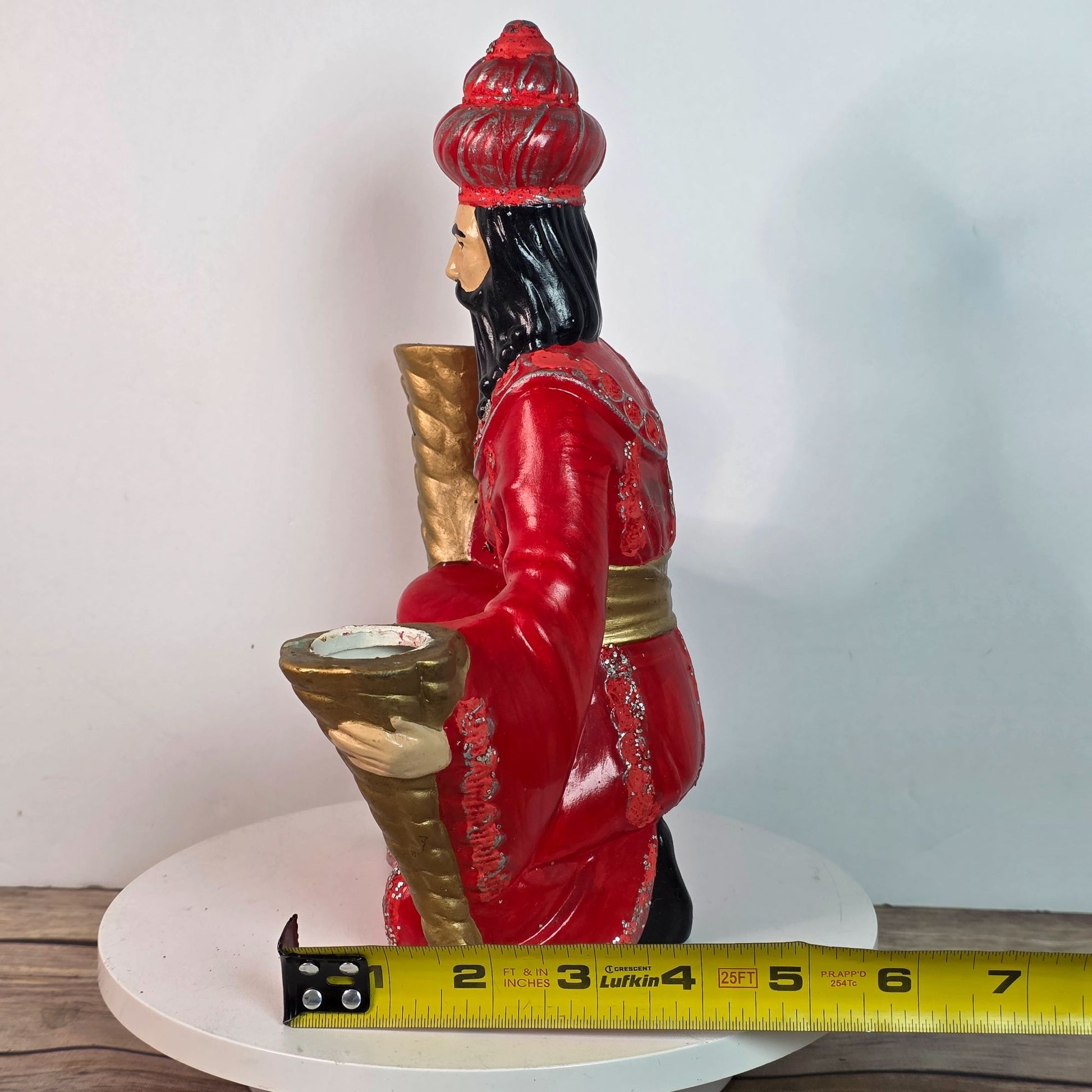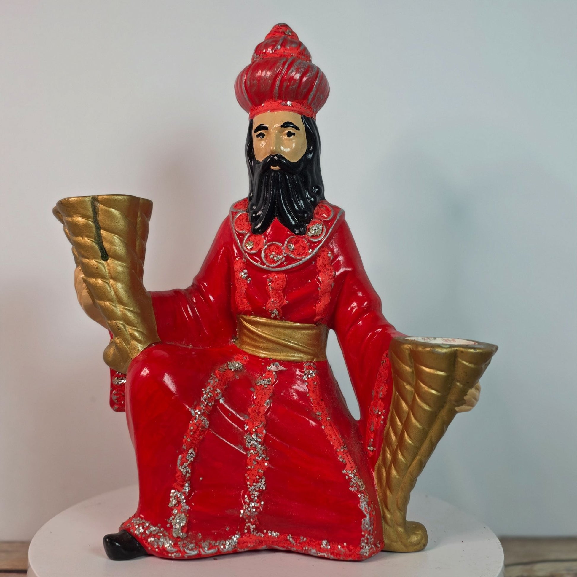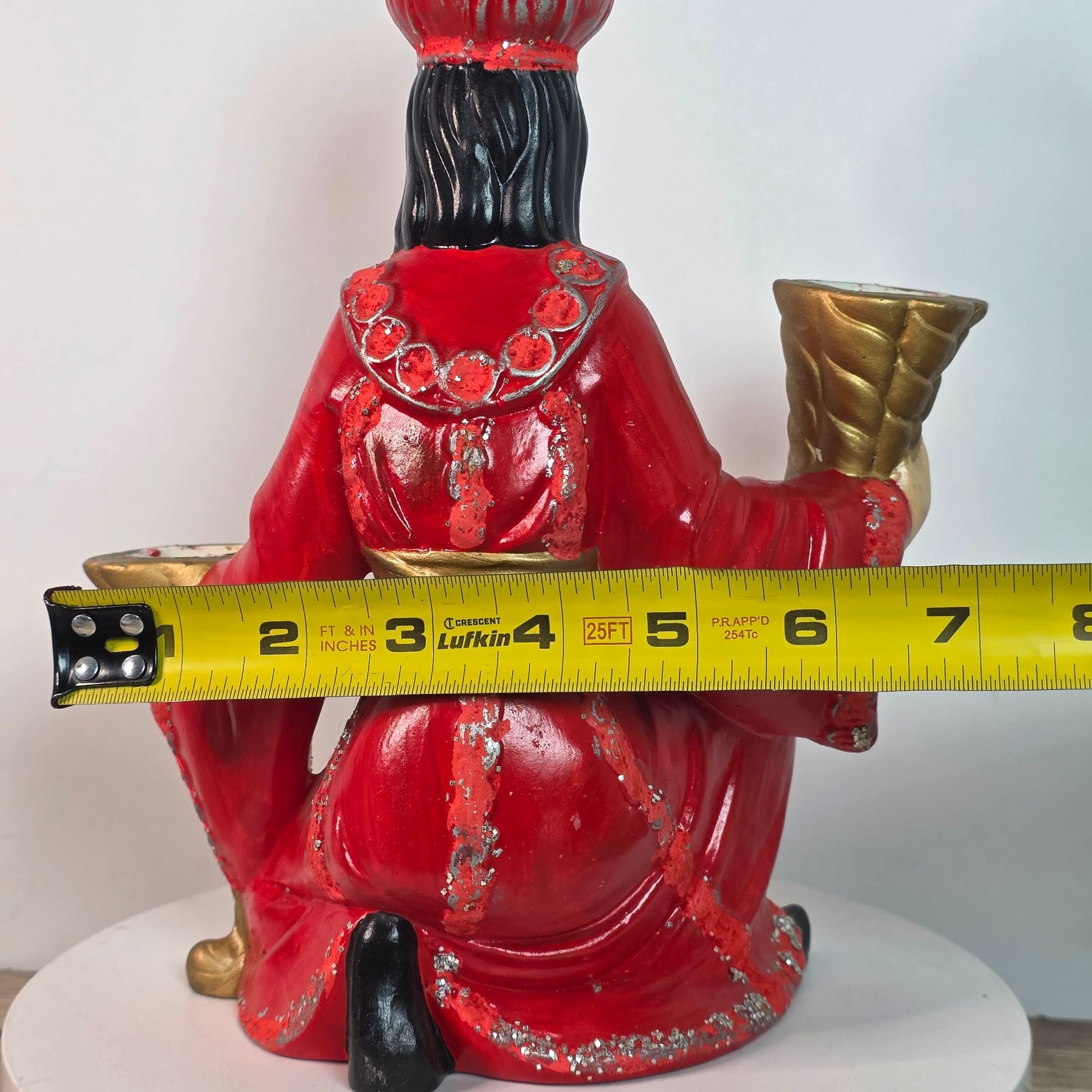 This exquisite vintage Zavori Nativity figurine, crafted in 1979, captures the essence of timeless artistry. Hand-painted with meticulous detail, this ceramic candle holder radiates a charming aura, elevating any sacred or festive setting. The vivid red and gold hues accentuate its regal presence while the intricate embellishments highlight the craftsmanship. This piece serves as both a functional candle holder and an artistic centerpiece, embodying a rich cultural narrative and a testament to skilled artisanship.