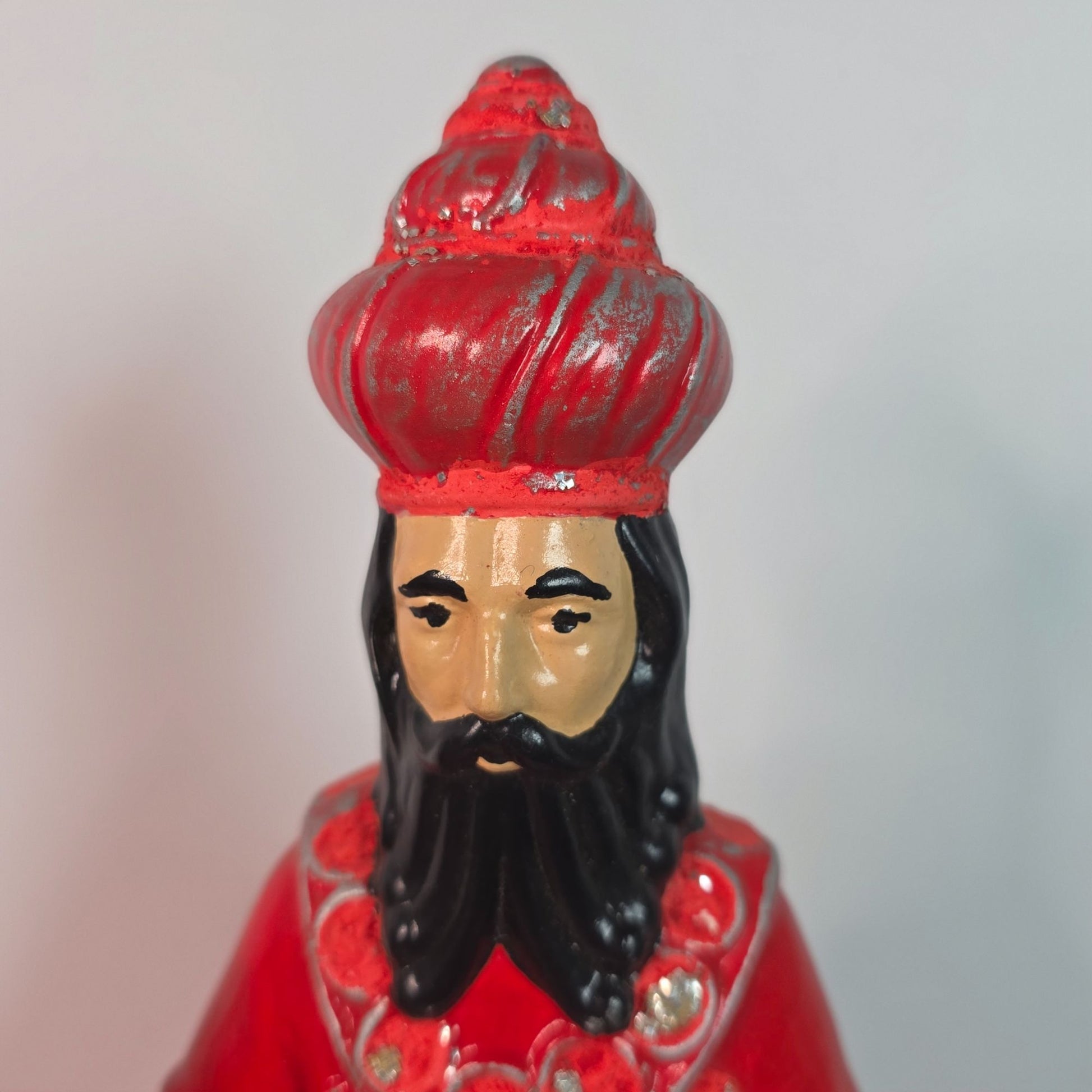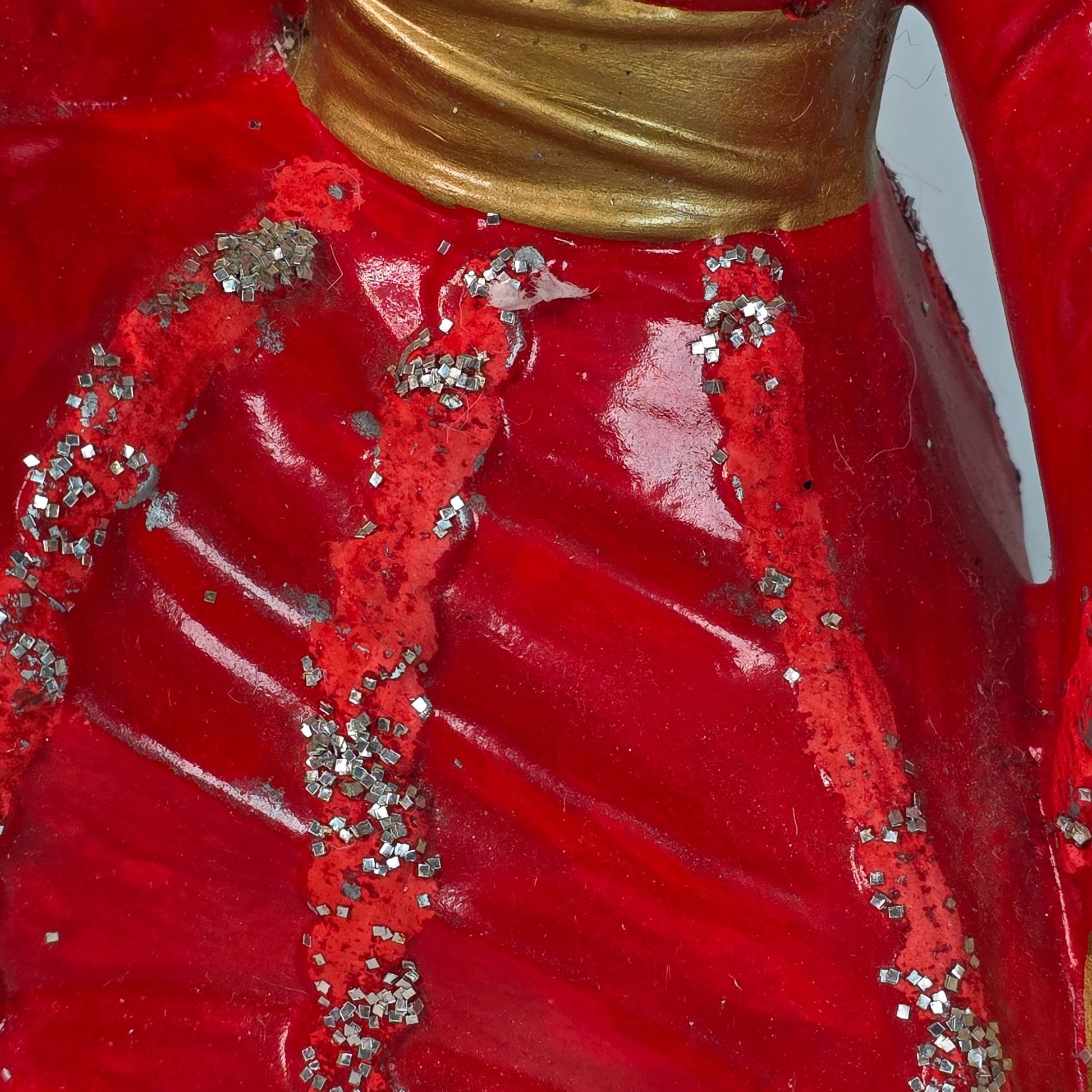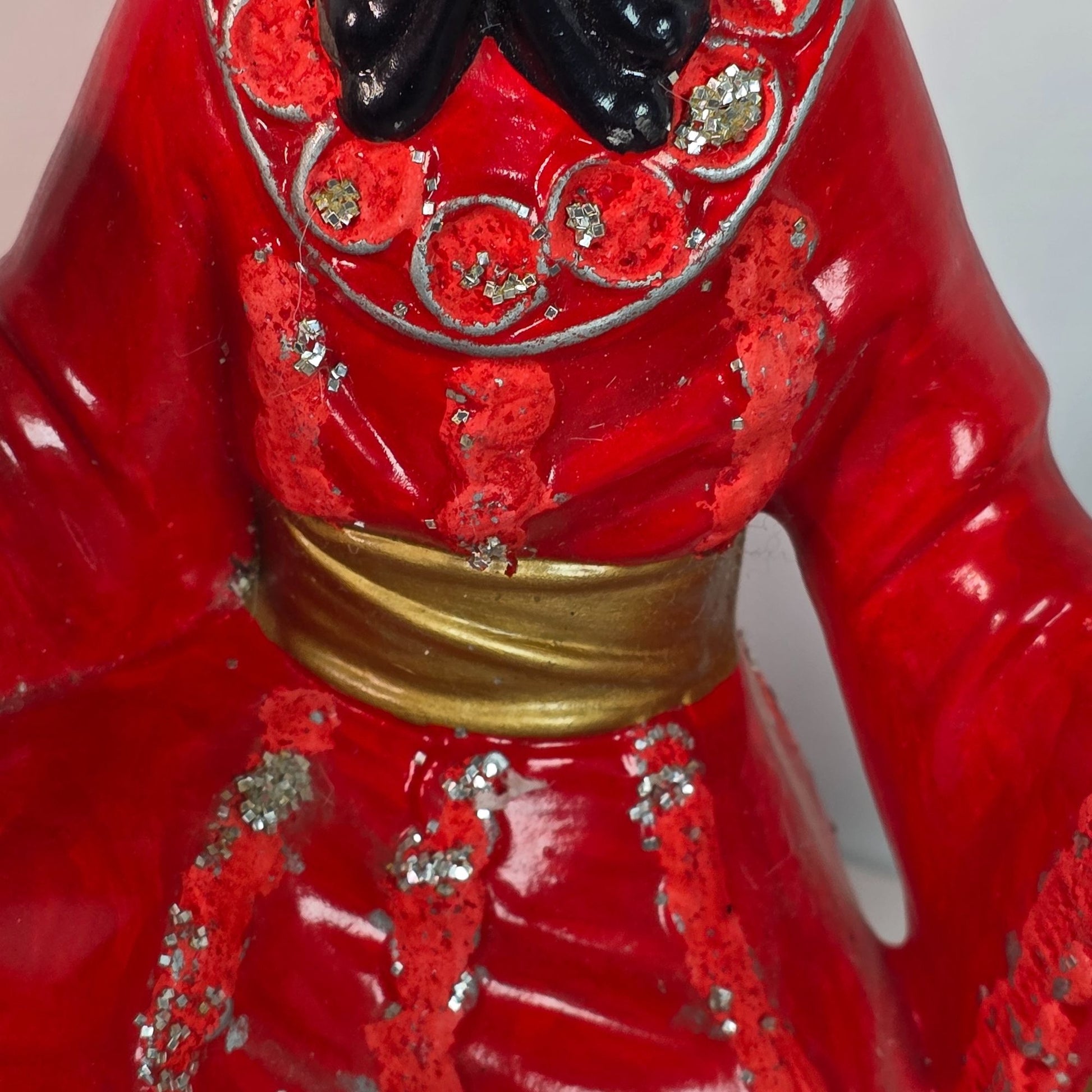 This exquisite vintage Zavori Nativity figurine, crafted in 1979, captures the essence of timeless artistry. Hand-painted with meticulous detail, this ceramic candle holder radiates a charming aura, elevating any sacred or festive setting. The vivid red and gold hues accentuate its regal presence while the intricate embellishments highlight the craftsmanship. This piece serves as both a functional candle holder and an artistic centerpiece, embodying a rich cultural narrative and a testament to skilled artisanship.
