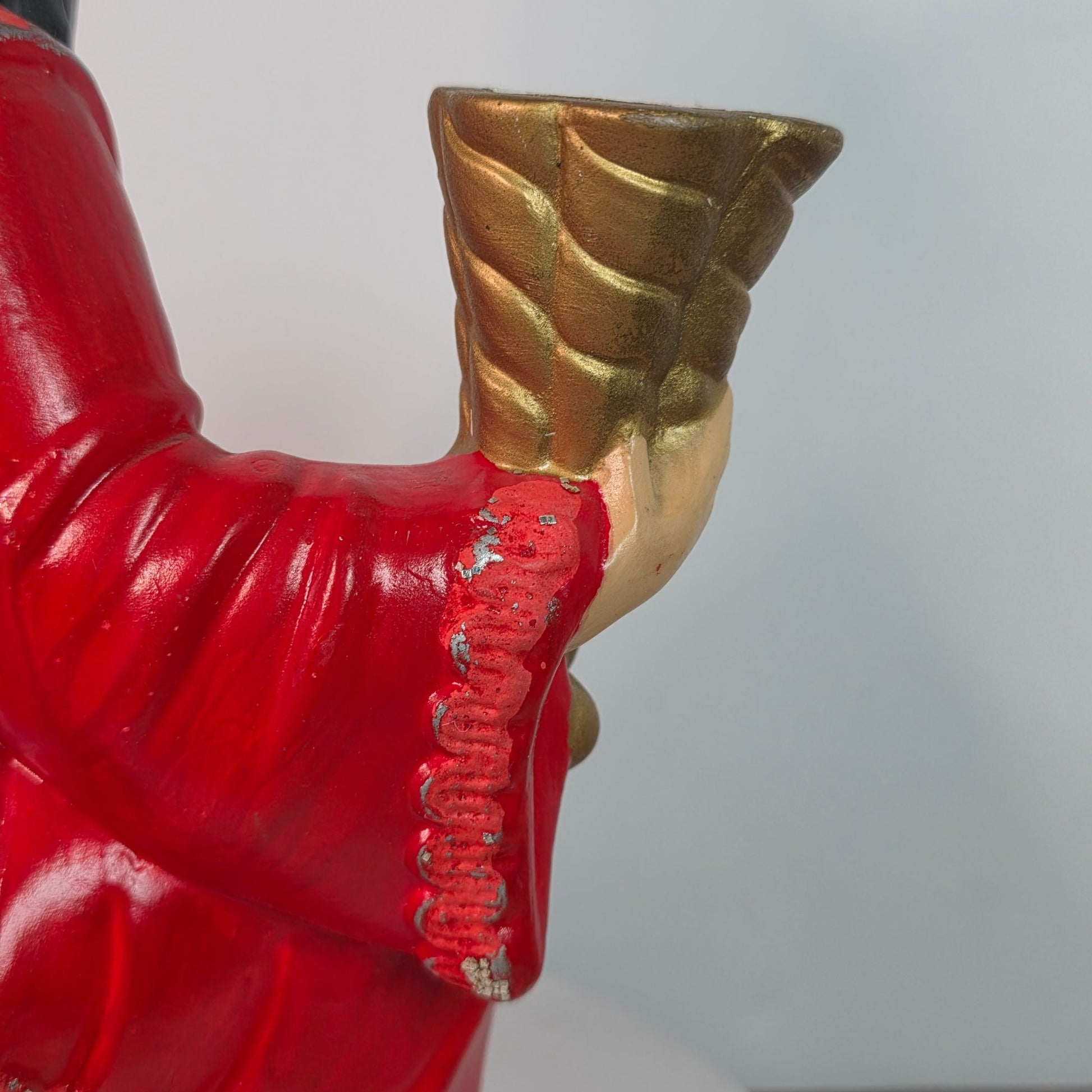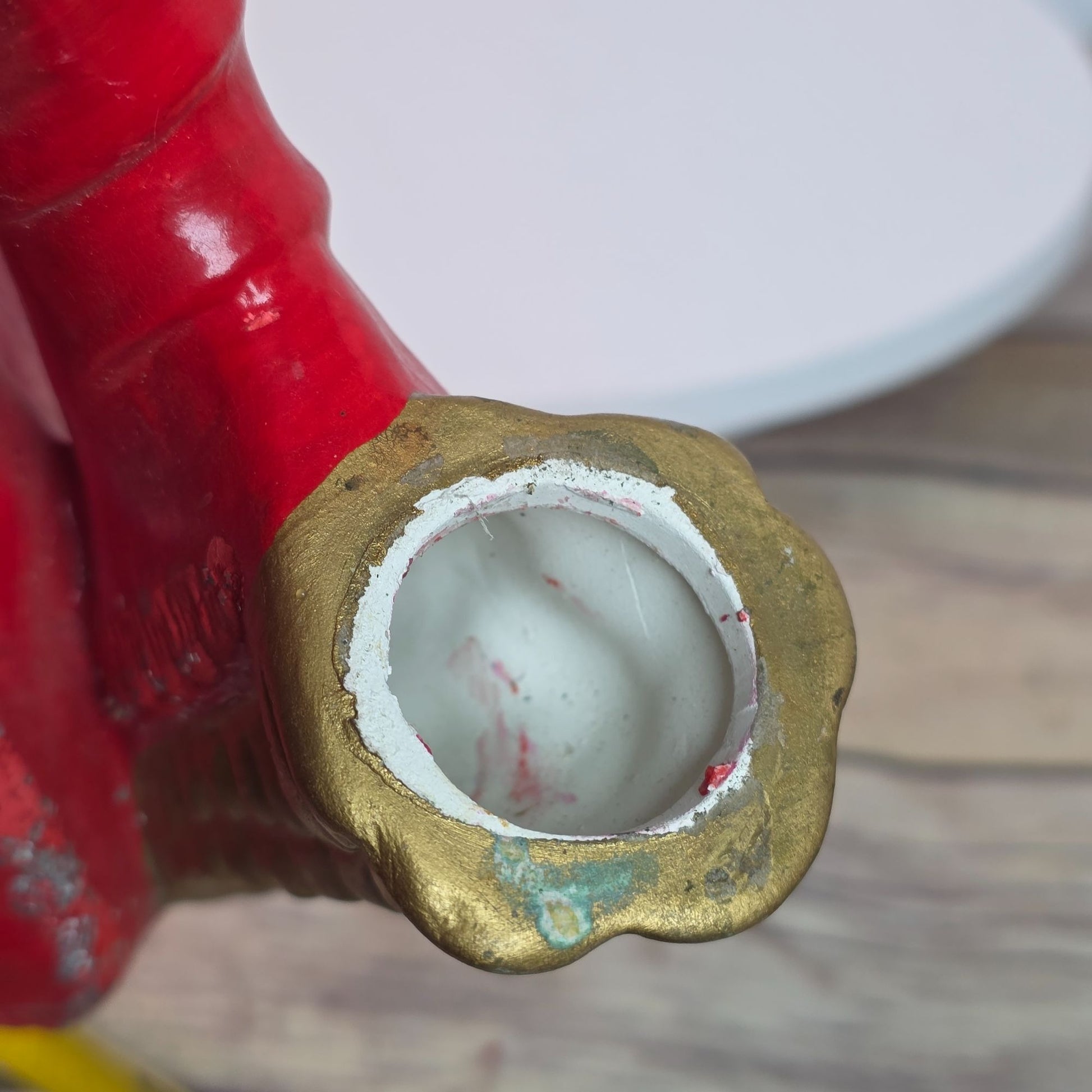• • Dual candle holder design• Hand-painted intricate details• Vibrant red and gold colors• Ceramic construction• Vintage piece from 1979