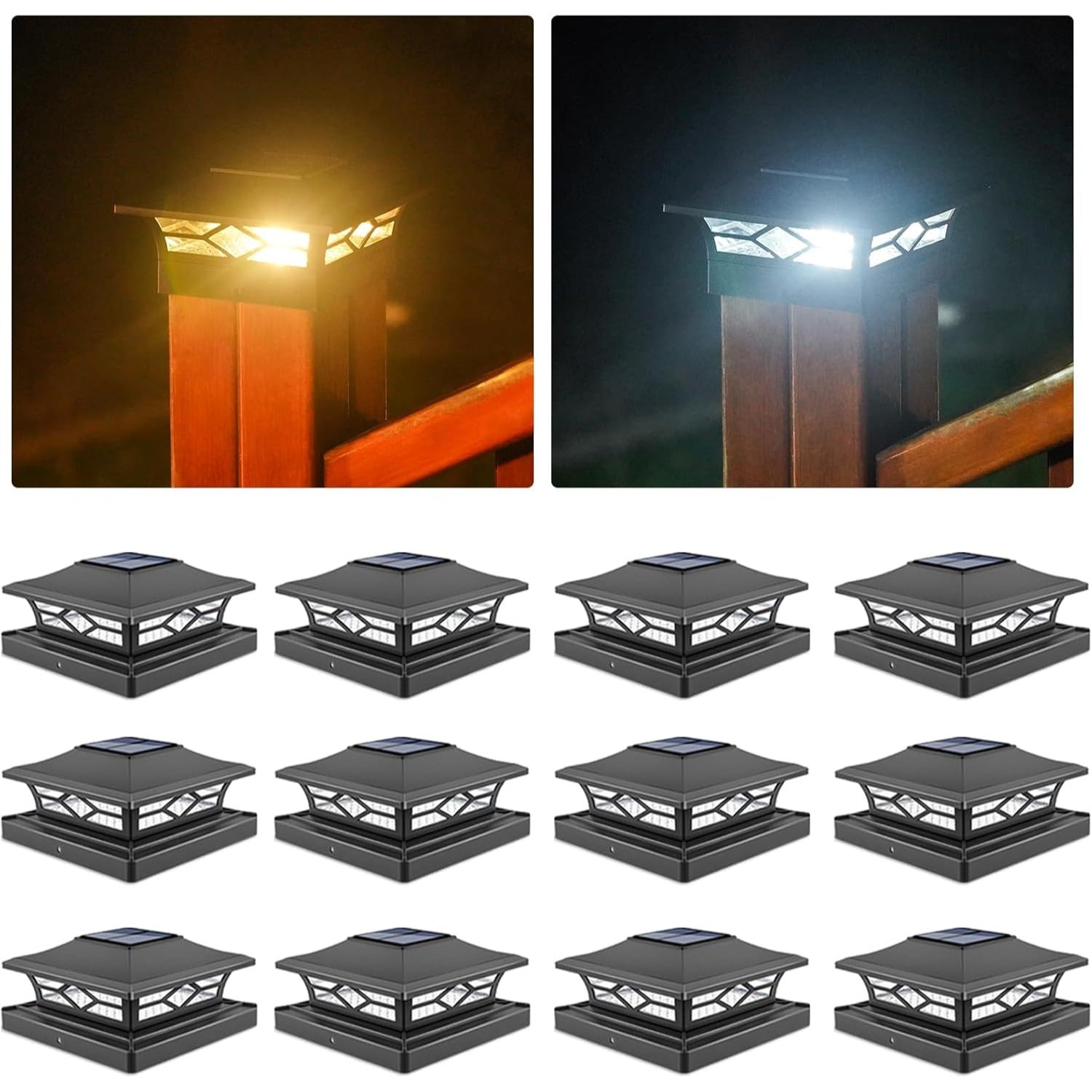 Volisun Solar Post Cap Lights 12 Pack Warm/Cool White Outdoor Lighting For Fence Deck & Patio