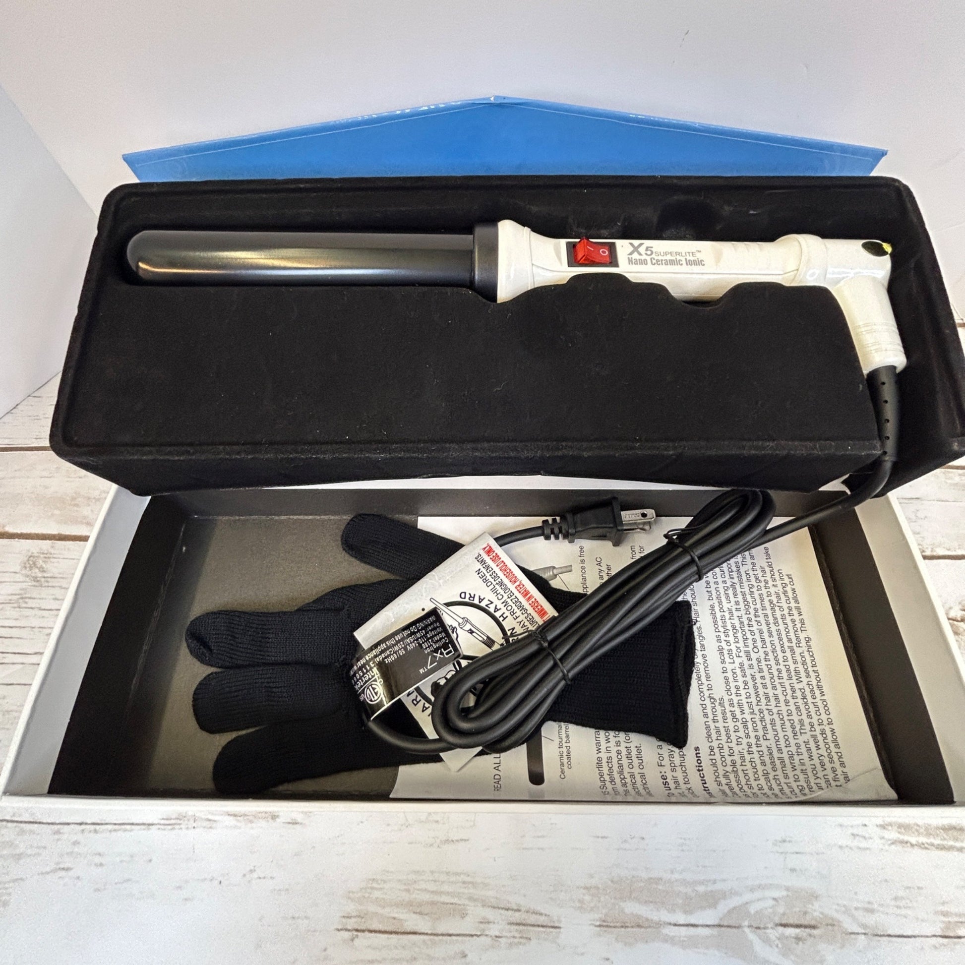 X5 Superlite Nano Ceramic Tourmaline Clipless Curling Iron 1 1/4" Barrel Professional Hair Styling Tool With Heat Glove Included
