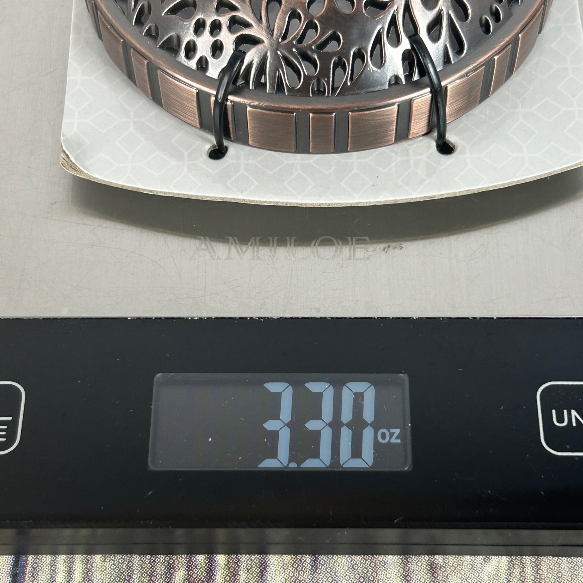 This Yankee Candle Illuma-Lid Candle Topper, adorned with an intricate floral pattern, offers both aesthetic charm and practical benefits. Designed to enhance candle performance, it helps the candle burn more evenly by regulating airflow. The elegant bronze finish adds a touch of sophistication to any room decor, making it a beautiful and functional accessory for your candle collection.