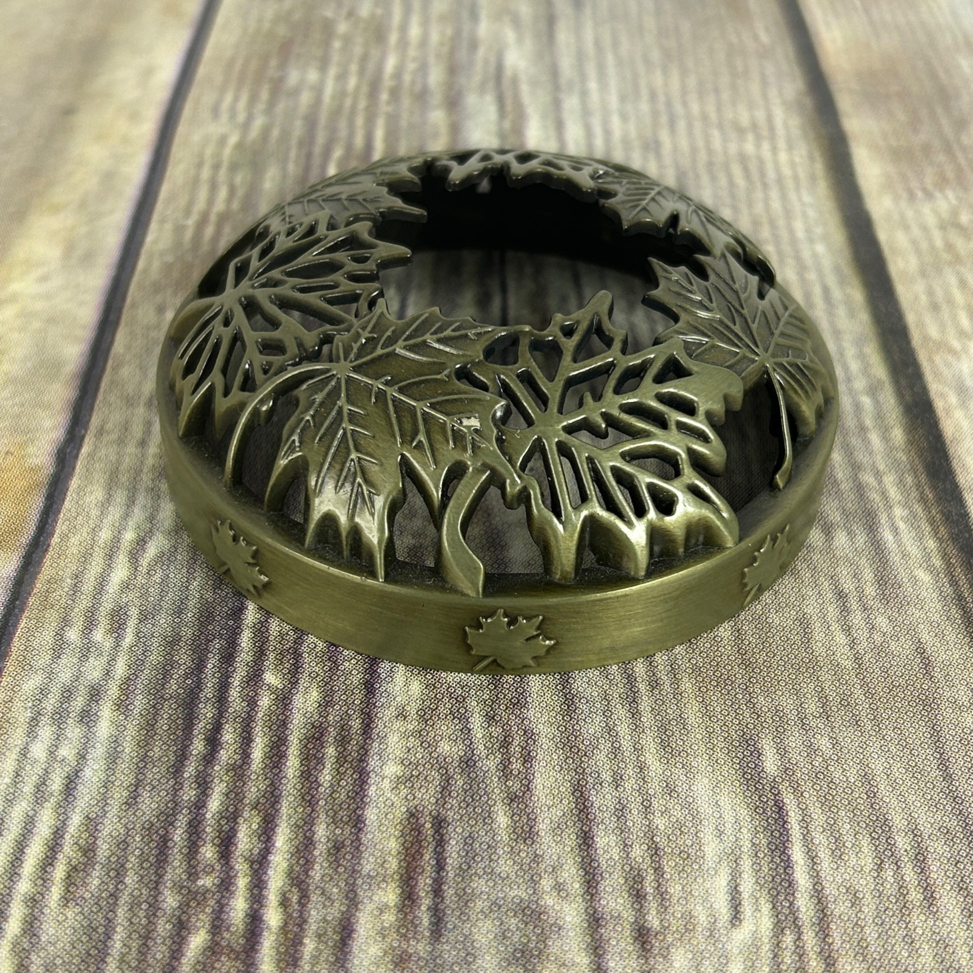 This intricately designed Yankee Candle Illuma-Lid jar topper, adorned with a captivating maple leaf pattern, serves as both a decorative and functional accessory for your candles. Crafted from durable metal, this charming lid not only adds an aesthetic touch but also aids in ensuring an even burn and reducing soot formation, enhancing your candle experience.